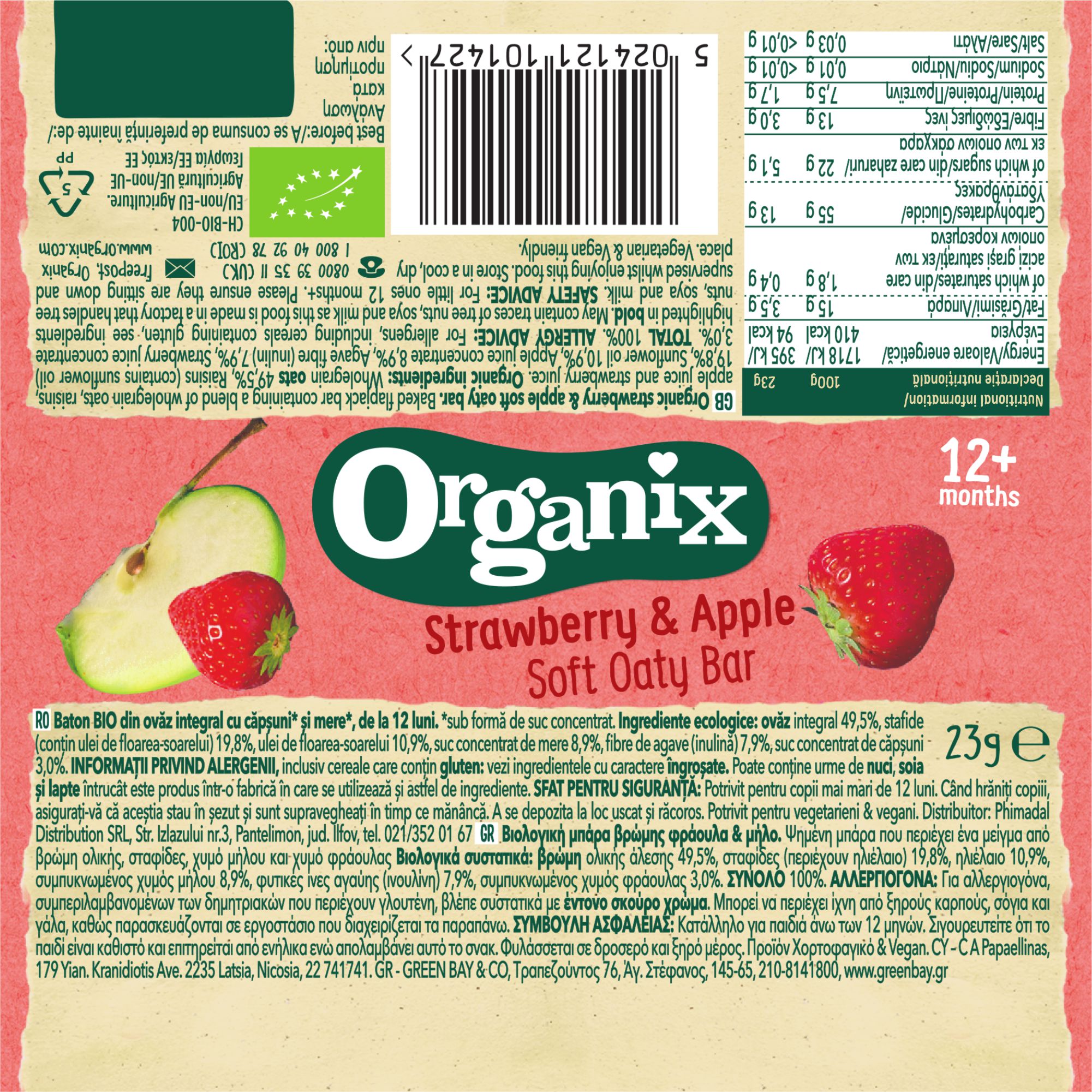 Adauga in cos oricare doua produse din lista selectata si primesti un Baton bio din ovaz integral cu capsuni si mere, 12 luni+, 23 g, Organix