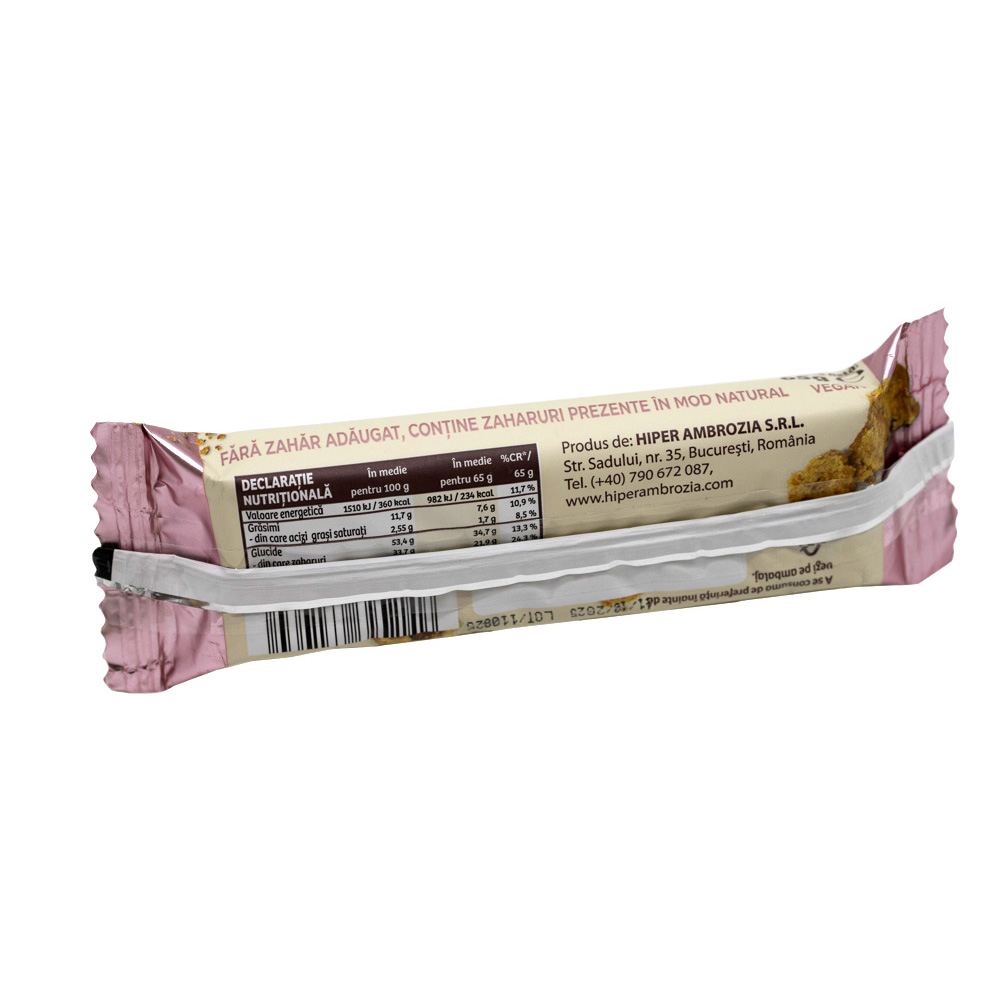 Batonul de biscuiți Ambrozia este un desert vegan (de post), fără zahăr adăugat, inspirat de gustul clasic al salamului de biscuiți al copilăriei. Realizat din ingrediente naturale, bogate în fibre, acest baton este sățios și aromat, ideal atunci când ai poftă de ceva dulce și bun, fără compromisuri.