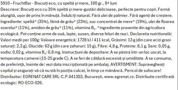 Biscuiți eco cu 35% speltă și mere - gustări delicioase, perfecte pentru copii. Formă alungită, ușor de prins în mânuță. Îndulciți natural. Fără ulei de palmier. Fără agenți de creștere.