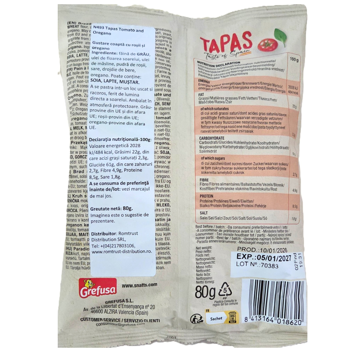 Ultima actualizare a informatiilor de prezentare pentru Tapas Snacks cu rosii si oregano, 80 g, Snatt's a fost efectuata la data de 16-04-2026.  |  Raporteaza Descriere Gresita