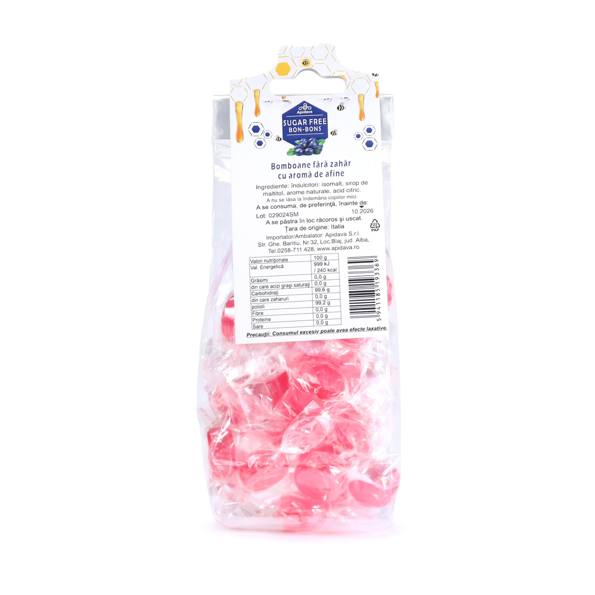 Ultima actualizare a informatiilor de prezentare pentru Bomboane fara zahar, aroma de afine, 70 g, Apidava a fost efectuata la data de 20-04-2026.  |  Raporteaza Descriere Gresita
