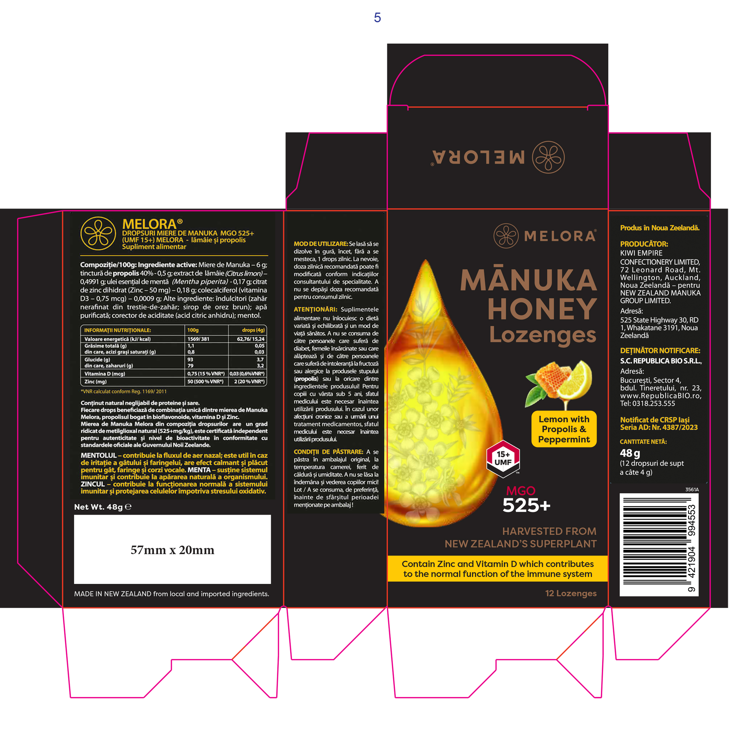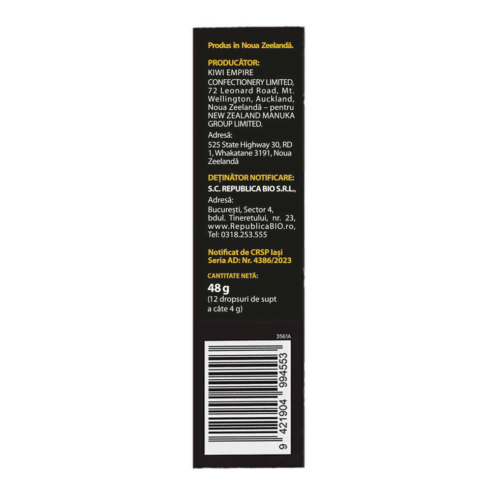 Dropsuri cu miere de Manuka MGO525 si extract din lamaie si propolis, 12 bucati, Melora