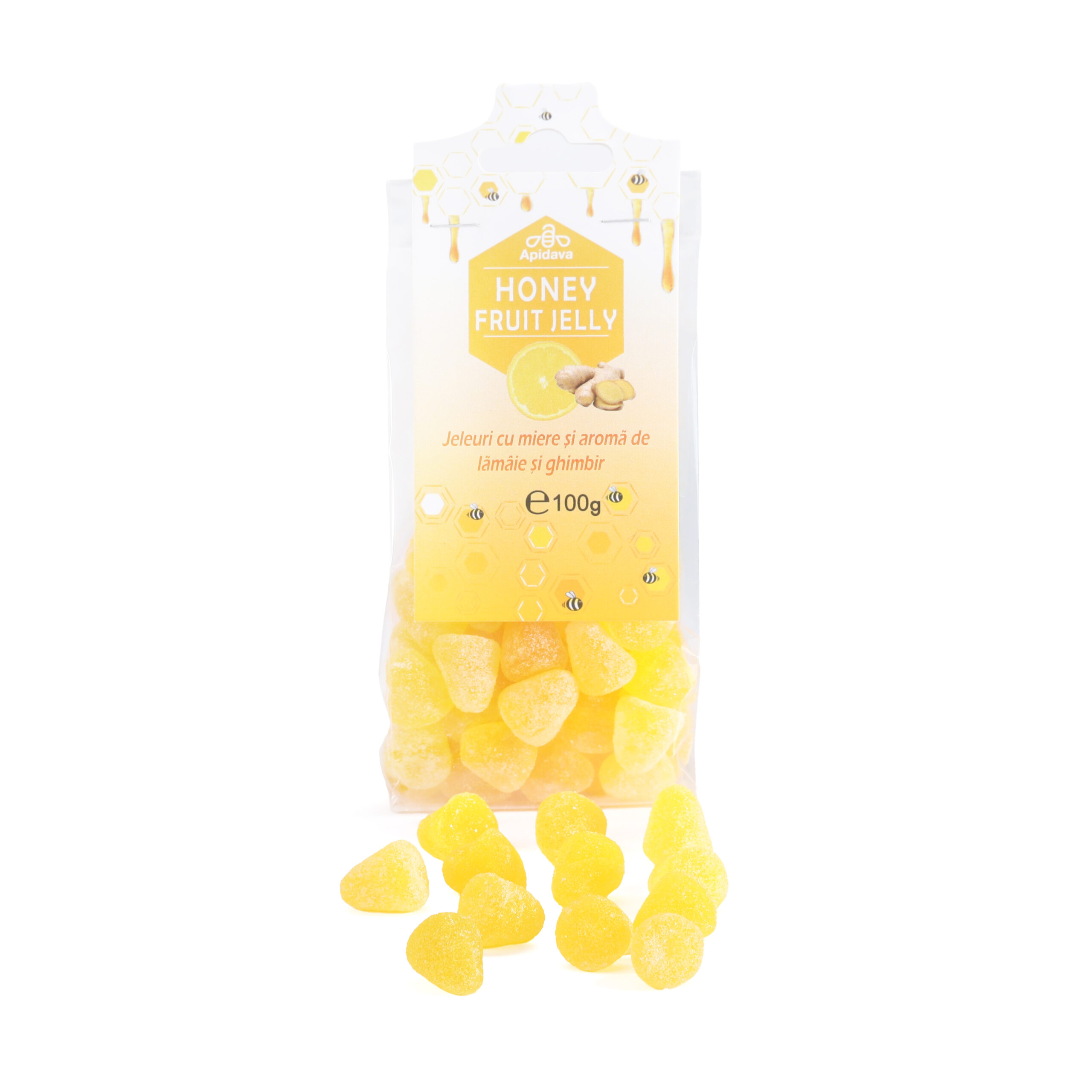 Jeleuri cu miere si aroma de lamaie si ghimbir, 100 g, Apidava [5941185193079]