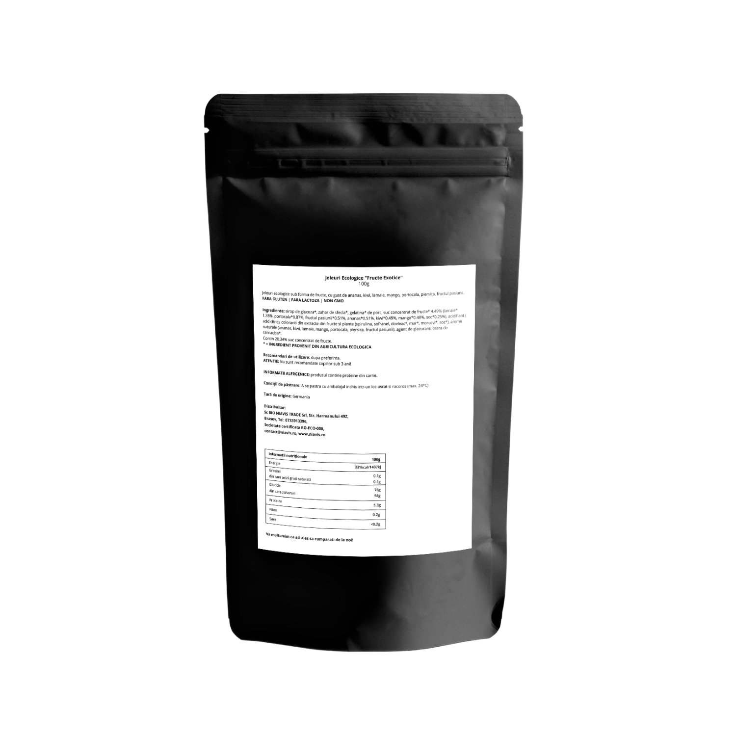 Jeleuri ecologice sub forma de fructe, cu gust de ananas, kiwi, lamaie, mango, portocala, piersica, fructul pasiunii.