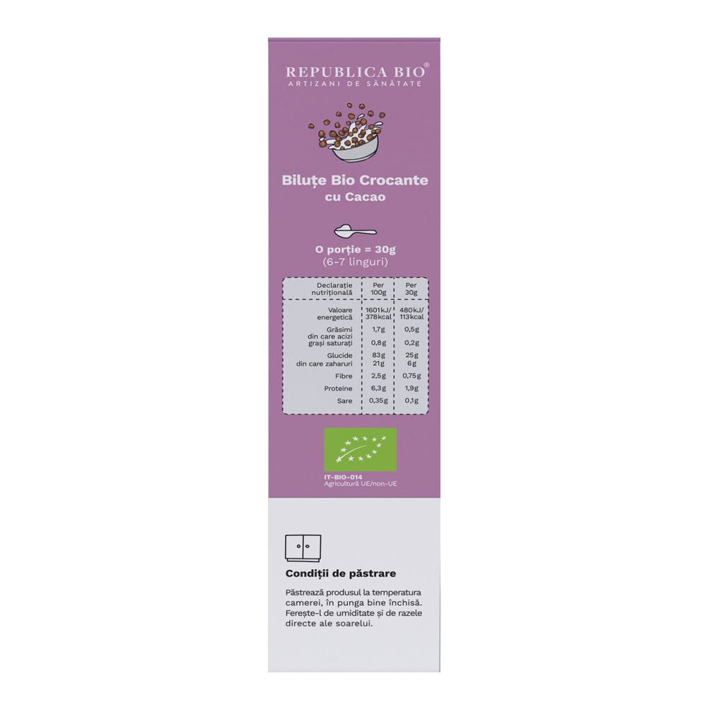 Ultima actualizare a informatiilor de prezentare pentru Bilute Bio crocante de ciocolata, 250 g, Republica Bio a fost efectuata la data de 16-04-2026.  |  Raporteaza Descriere Gresita
