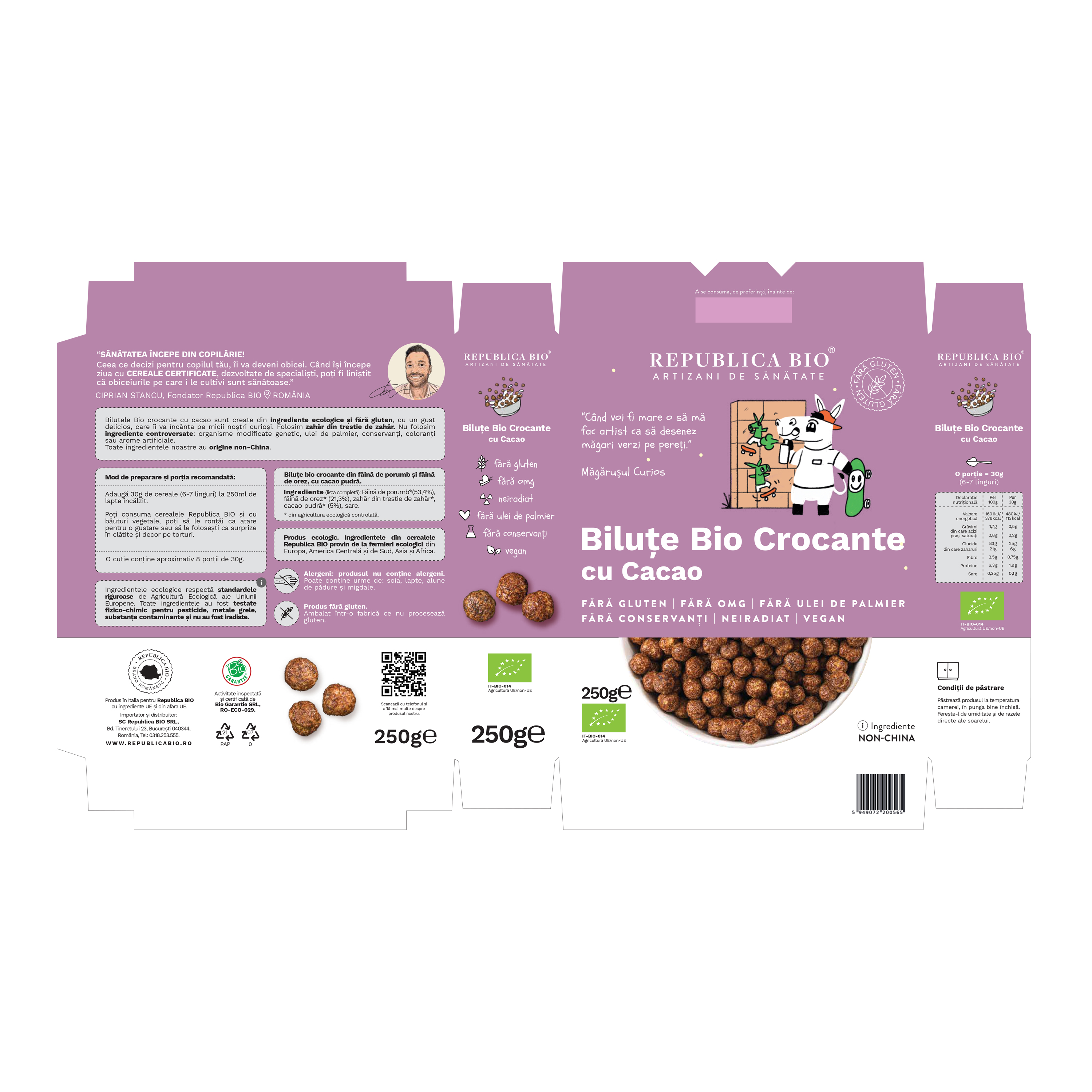 • Fara gluten, fara organisme modificate genetic, fara ulei de palmier, conservanti sau coloranti.