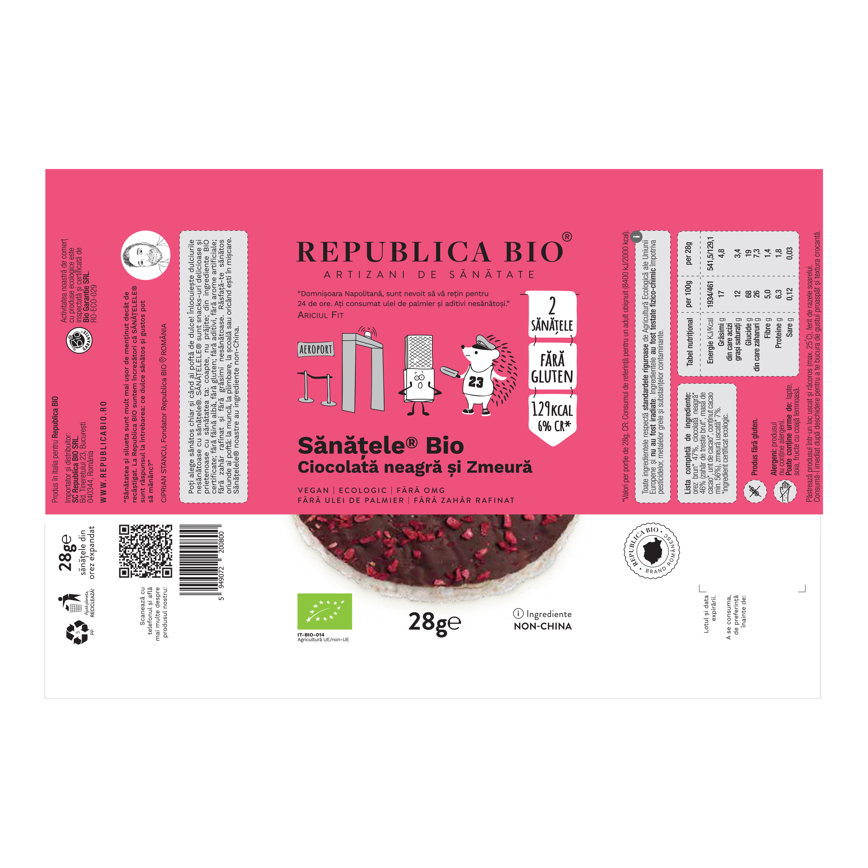 Descoperă Sănățele BIO cu Ciocolată și Zmeură de la Republica BIO. Gustări sănătoase, fără gluten, perfecte pentru o alimentație echilibrată.