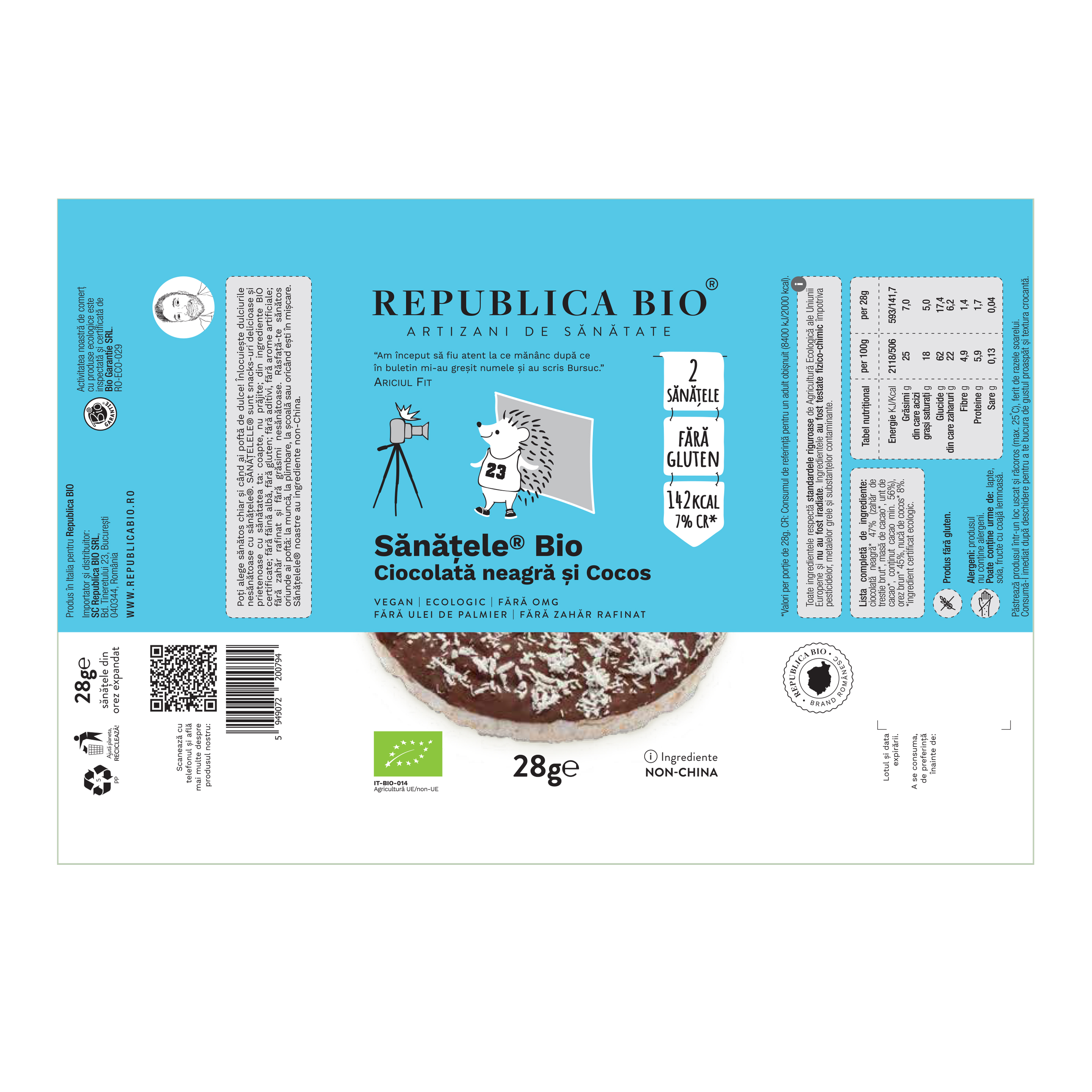Alergeni: produsul nu contine alergeni. Poate contine urme de: lapte, soia, fructe cu coaja lemnoasa.