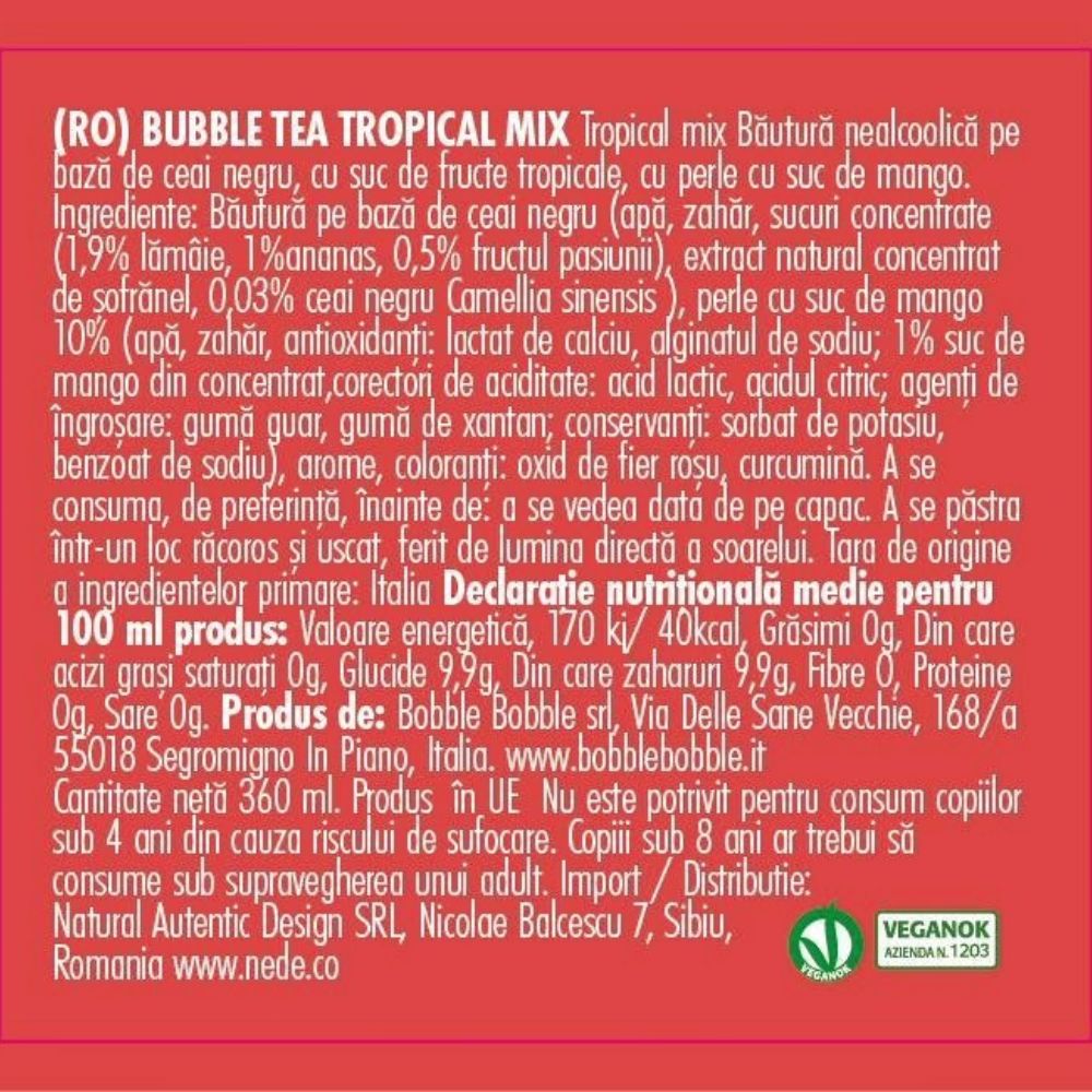 Tropical mix Băutură nealcoolică pe bază de ceai negru, cu suc de fructe tropicale, cu perle cu suc de mango.
