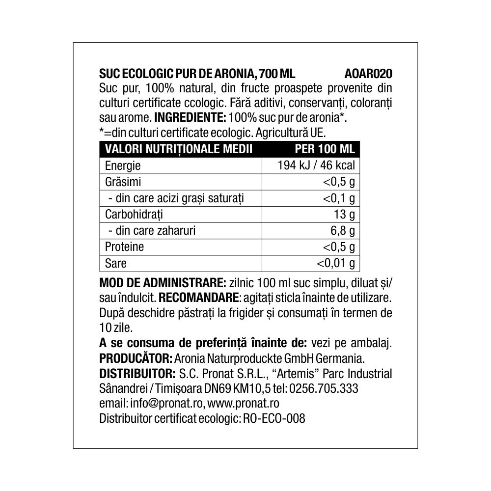 Ultima actualizare a informatiilor de prezentare pentru Suc bio pur de aronia, 100% suc, 700 ml, Aronia Original a fost efectuata la data de 30-03-2026.  |  Raporteaza Descriere Gresita