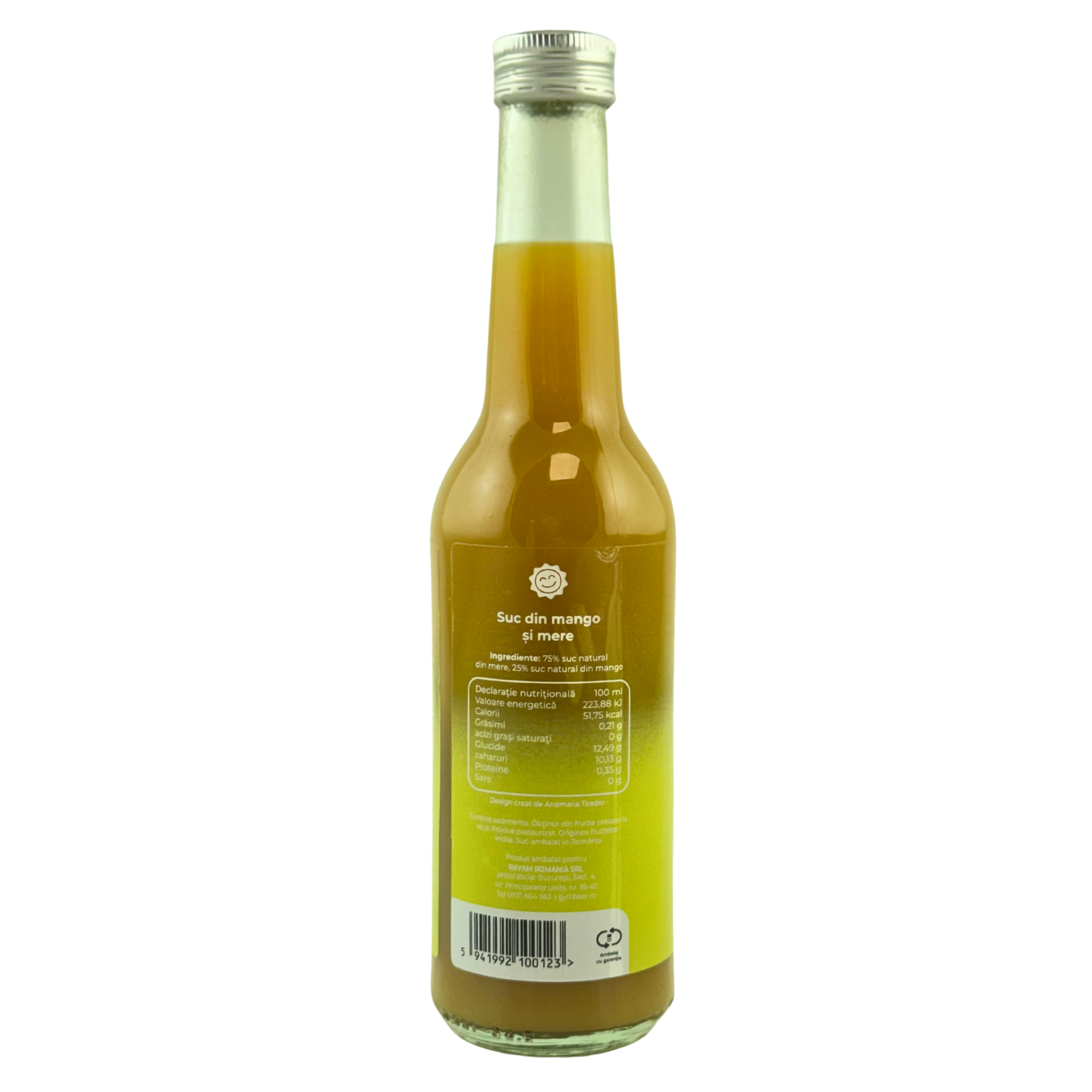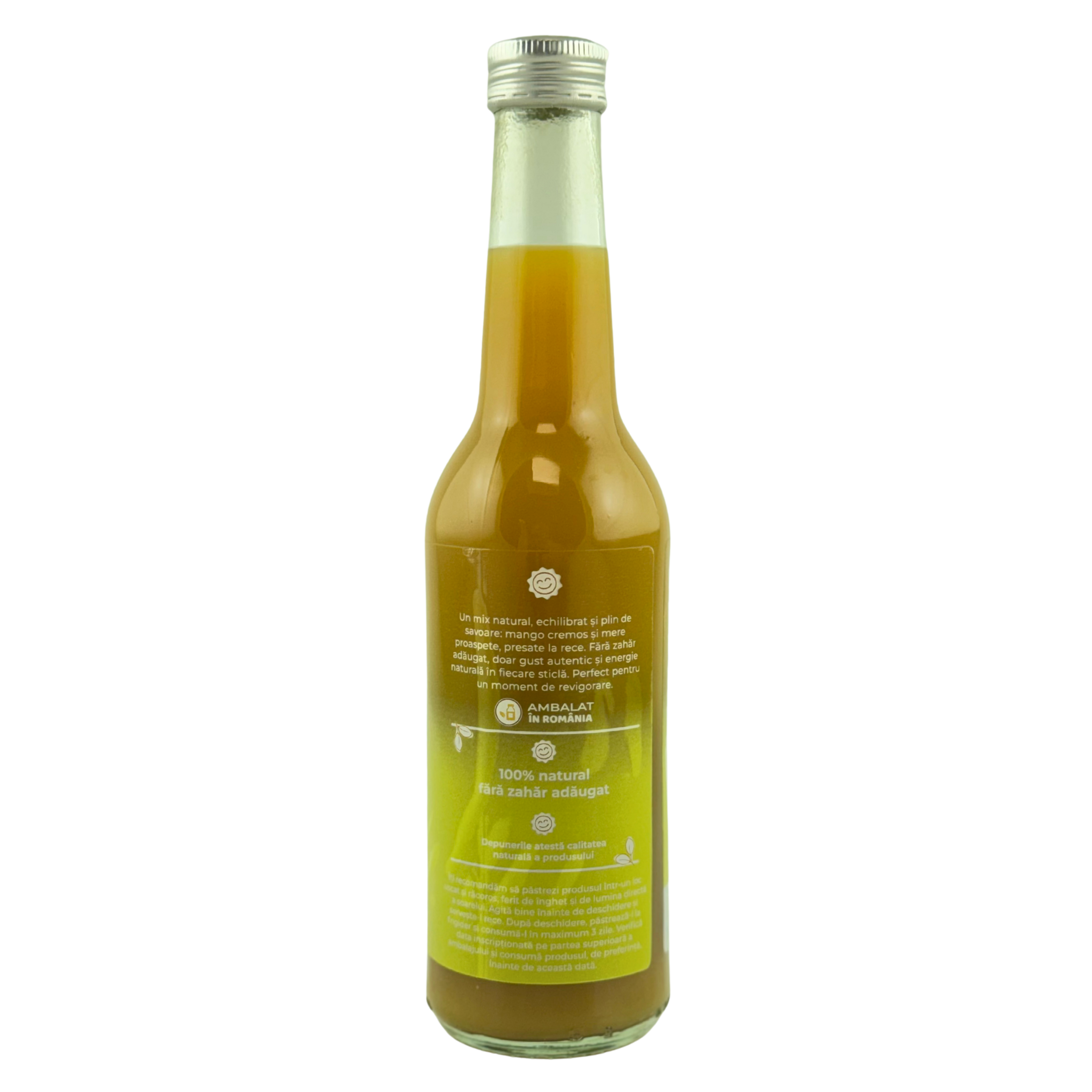 Sucul de Mango și Mere 100% Natural Presat la Rece combină prospețimea merelor românești cu savoarea exotică a mango-ului copt, într-un mix echilibrat, fără adaos de zahăr sau conservanți. Cu o textură ușor cremoasă și gust natural, sucul oferă un moment autentic de revigorare, potrivit oricând în timpul zilei.