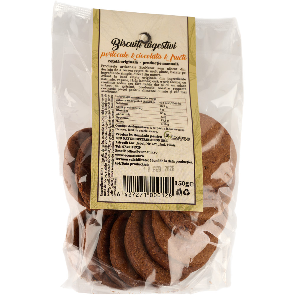 Făină integrală de grâu, curmale, stafide, ulei nehidrogenat de nucă de cocos, fulgi de ciocolată neagră, coajă portocale uscate, bicarbonat de sodiu. Conţine gluten.