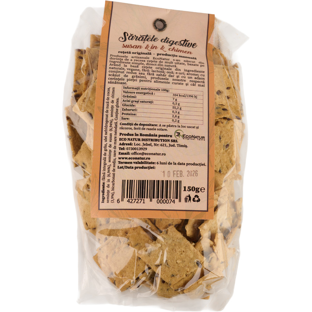 Faina integrala de grau, seminte de susan, seminte de in, chimen, sare de mare, ulei nehidrogenat de nuca de cocos, bicarbonat de sodiu. Produsul CONTINE GLUTEN.