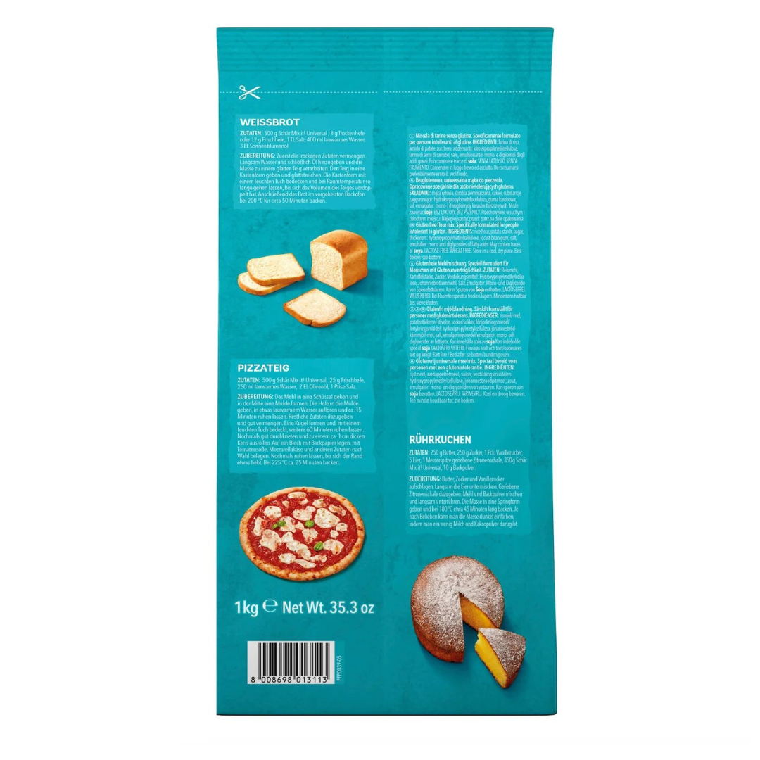 Faina universala fara gluten este special conceputa pentru persoanele cu intoleranta la gluten si poate fi utilizata in diverse preparate, in functie de preferintele culinare. Formula include amidon de porumb, faina de orez, faina de sorg, fibre vegetale din psyllium si proteine din mazare, fiind mentionata ca fara gluten, fara grau si fara lactoza.