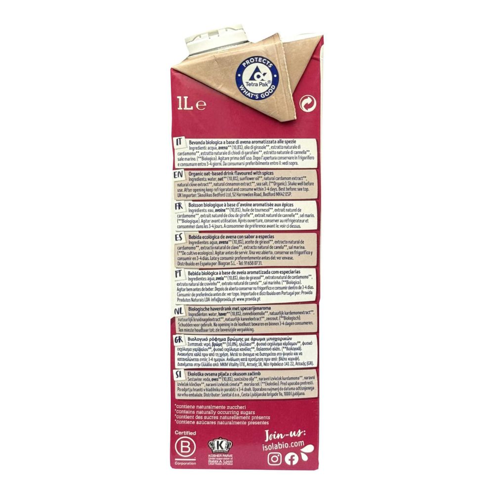 Apa, *ovaz (10.8%), *ulei de semințe de floarea-soarelui, *extract natural de cardamon, *extract natural de cuișoare, *extract natural de scortisoara, sare de mare. *=ingrediente de agricultura ecologica.