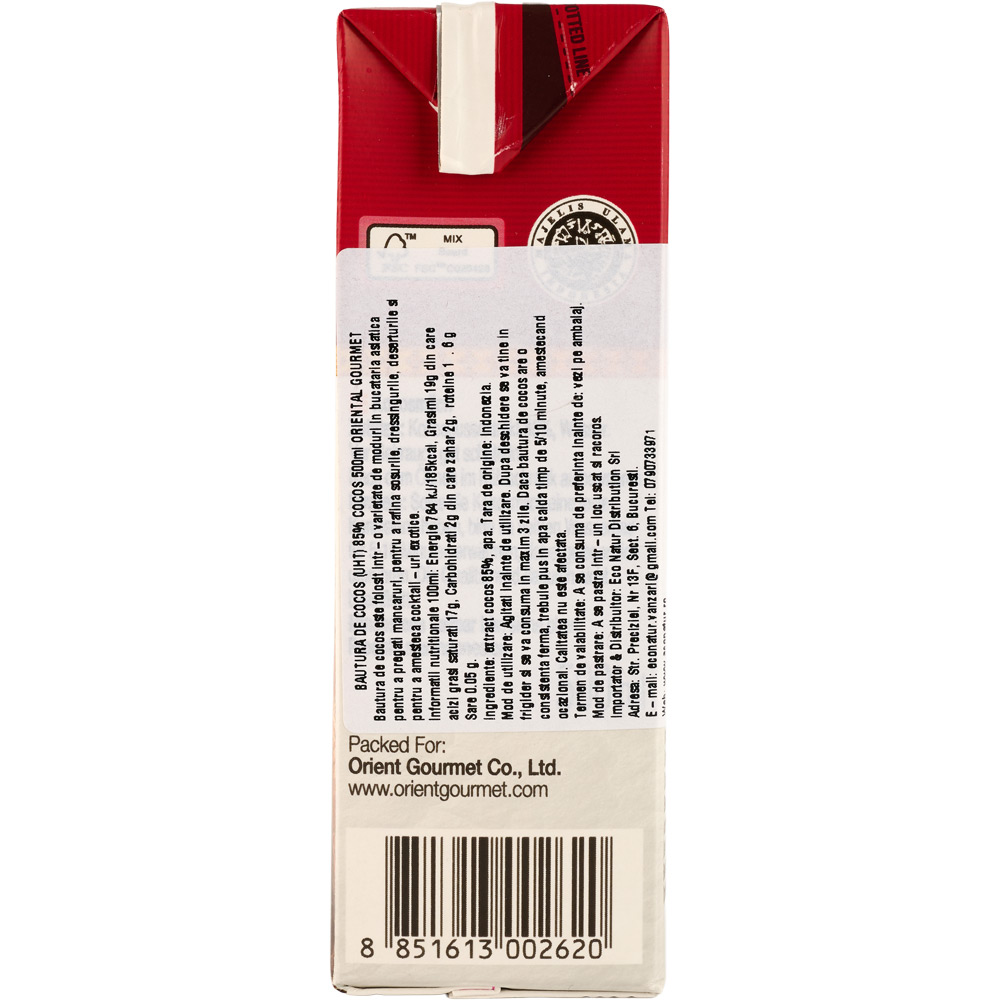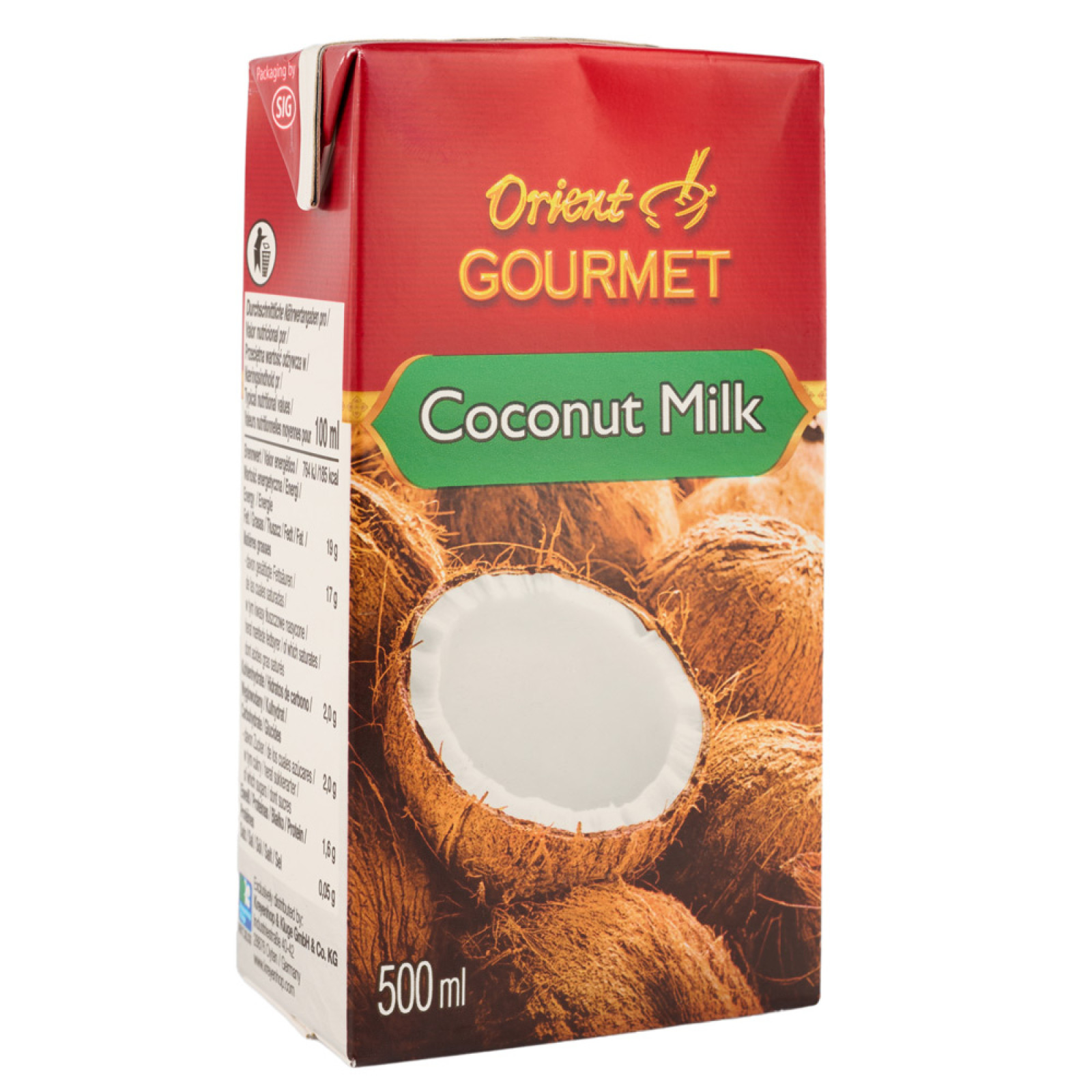 Lapte de cocos (UHT) 1L Orient Gourmet – un ingredient esențial în bucătăria asiatică, perfect pentru prepararea diverselor feluri de mâncare, rafinarea sosurilor și dressingurilor, deserturilor și cocktailurilor exotice.