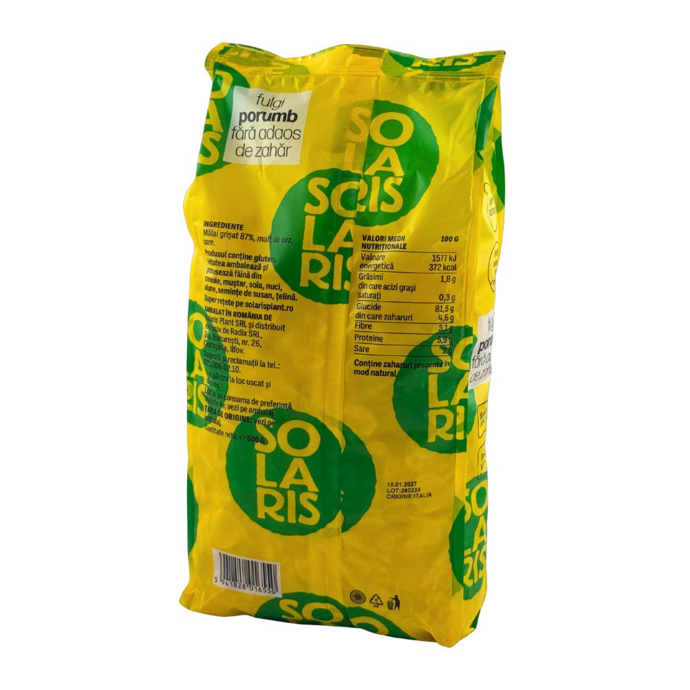 Fulgi de porumb fara adaos de zahar, deliciosi si sanatosi. Confera satietate de lunga durata si sunt potriviti nu doar pentru un mic dejun echilibrat, ci si pentru celelalte mese ale zilei. Fulgii sunt produsi in Italia, dupa reteta proprie a unei firme de familie cu traditie, care in prezent dispune de utilaje de ultima generatie, pentru a crea cei mai gustosi fulgi din cereale.