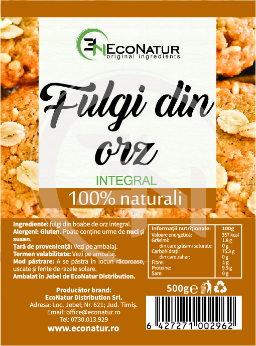 Fulgi de orz obținuți 100% din boabe de orz, fără adaos de zahăr, realizați din cereale integrale și au o valoare nutritivă deosebită, sunt bogați în fibre, proteine, carbohidrați complecsi, vitamine B, minerale și antioxidanți.