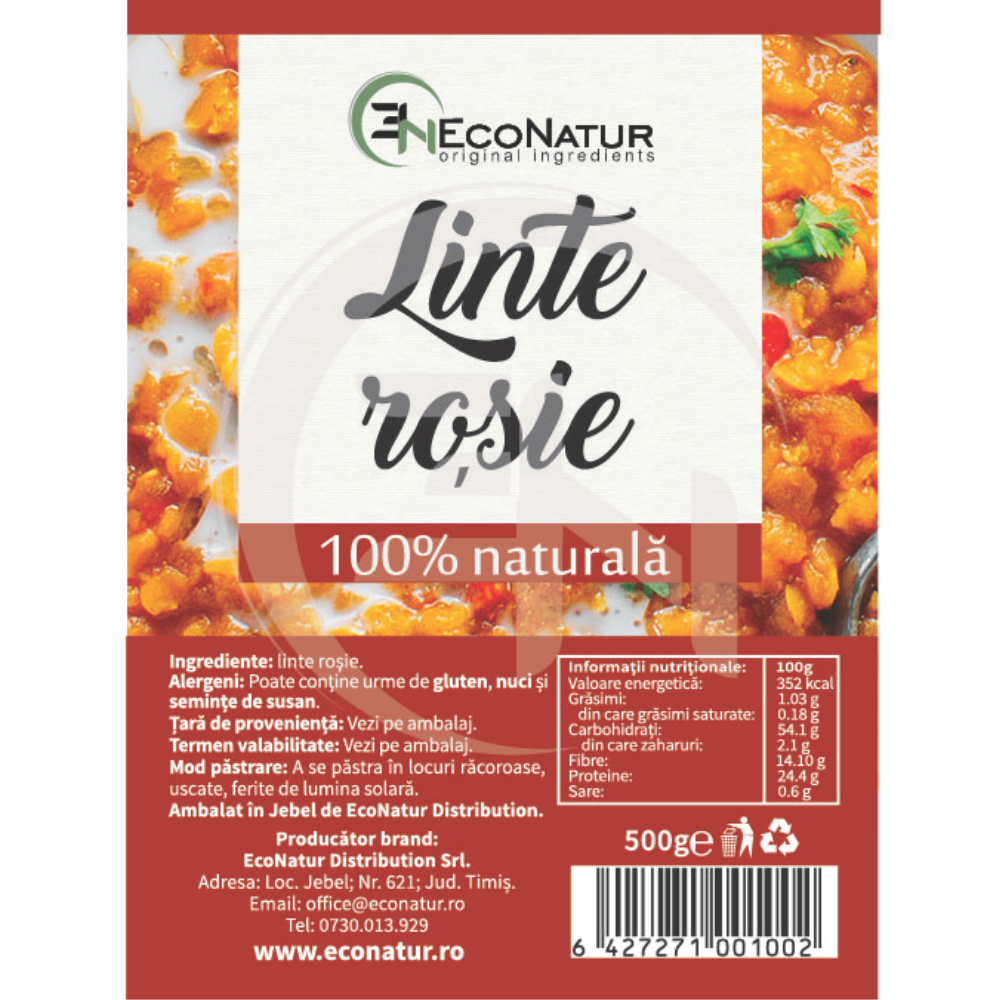 Ultima actualizare a informatiilor de prezentare pentru Linte rosie, 500 g, Econatur a fost efectuata la data de 23-04-2026.  |  Raporteaza Descriere Gresita