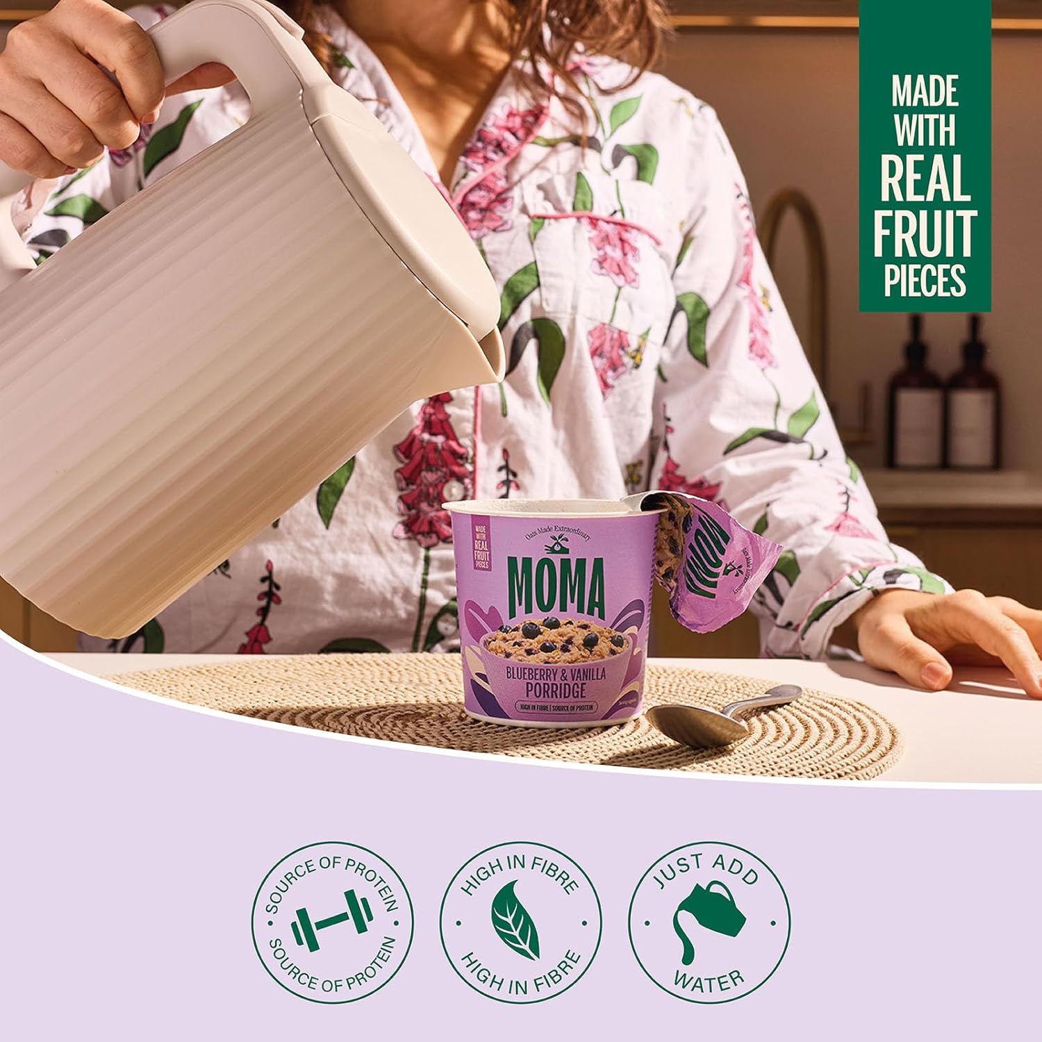 Porridge-ul Moma Foods cu afine și vanilie este un mic dejun hrănitor și delicios, creat din ovăz integral de înaltă calitate, combinat cu afine aromate și o notă delicată de vanilie naturală. Ideal pentru dimineți aglomerate sau pauze rapide, acest porridge oferă energie susținută și o textură cremoasă, fiind gata în doar câteva minute.