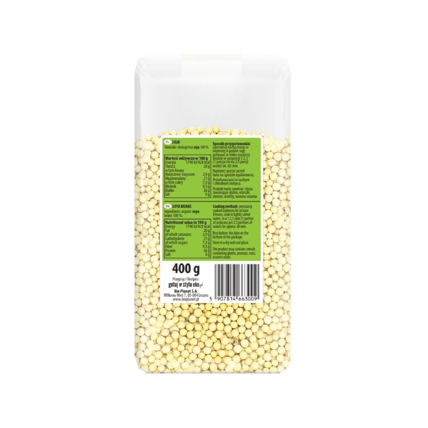 Soia boabe bio Bio Planet 400g, produs din agricultura ecologica, potrivit pentru diverse preparate culinare, fiind o sursa de proteine vegetale in alimentatia zilnica.