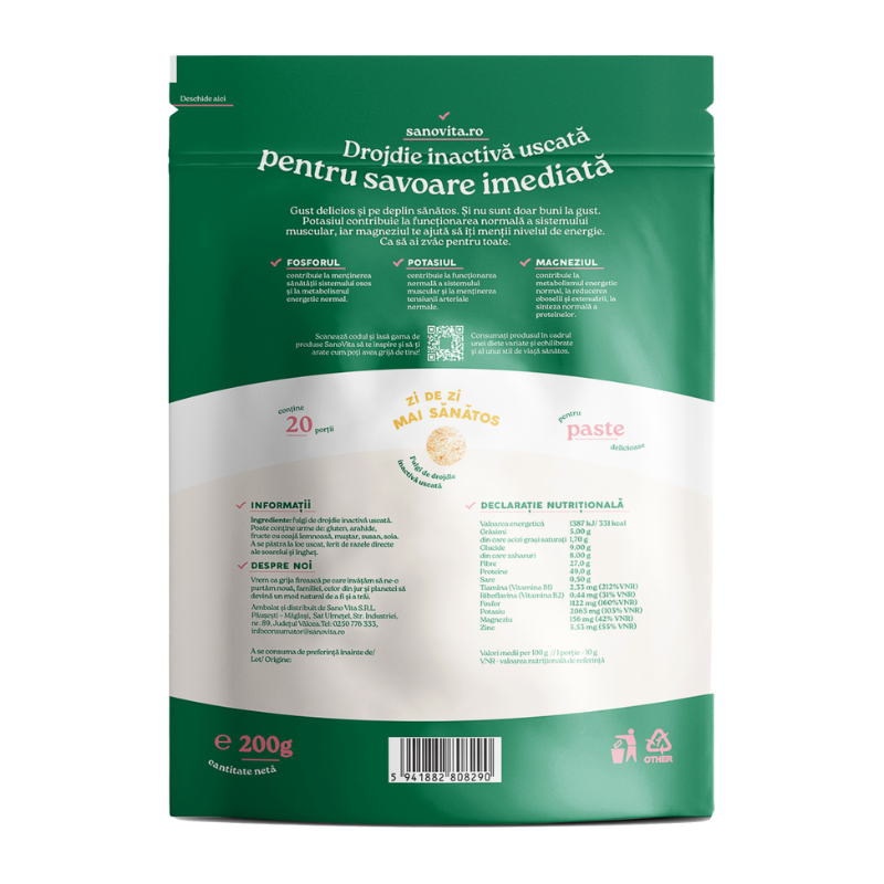 Fulgi de drojdie inactivă uscată Sano Vita sunt o sursă valoroasă de vitamine din complexul B, minerale și aminoacizi esențiali. Pot fi folosiți pentru a adăuga un plus de gust supelor, salatelor, pastelor, tocănițelor sau chiar ca agent de legare în preparate vegetale precum chifteluțe, perișoare sau drob.