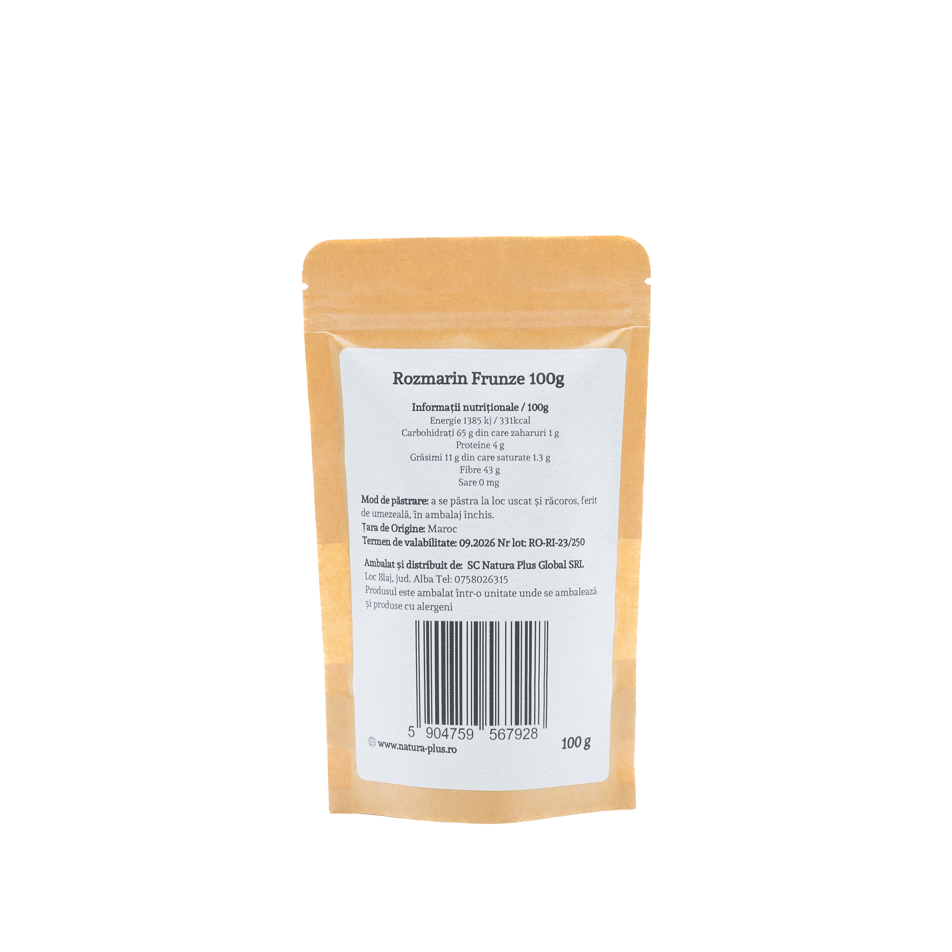 Frunzele de rozmarin Natura Plus oferă un gust aromat preparatelor cu carne, legume și cartofi. Conțin antioxidanți naturali.