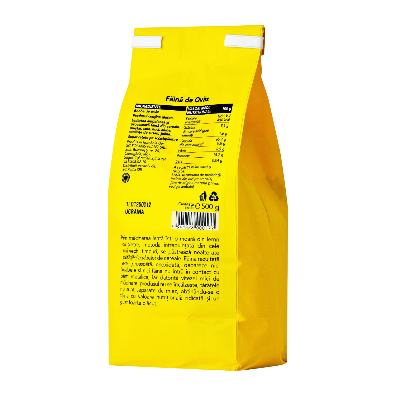 Făină de ovăz conține o substanță specifică numită avenină, precum și minerale, carotan, vitaminele B1, B2, PP, A, D, amidon, glucide, saponine, lecitină, enzime, ulei, fosfor, hidrați de carbon și chiar un principiu hormonal de tipul foliculinei.