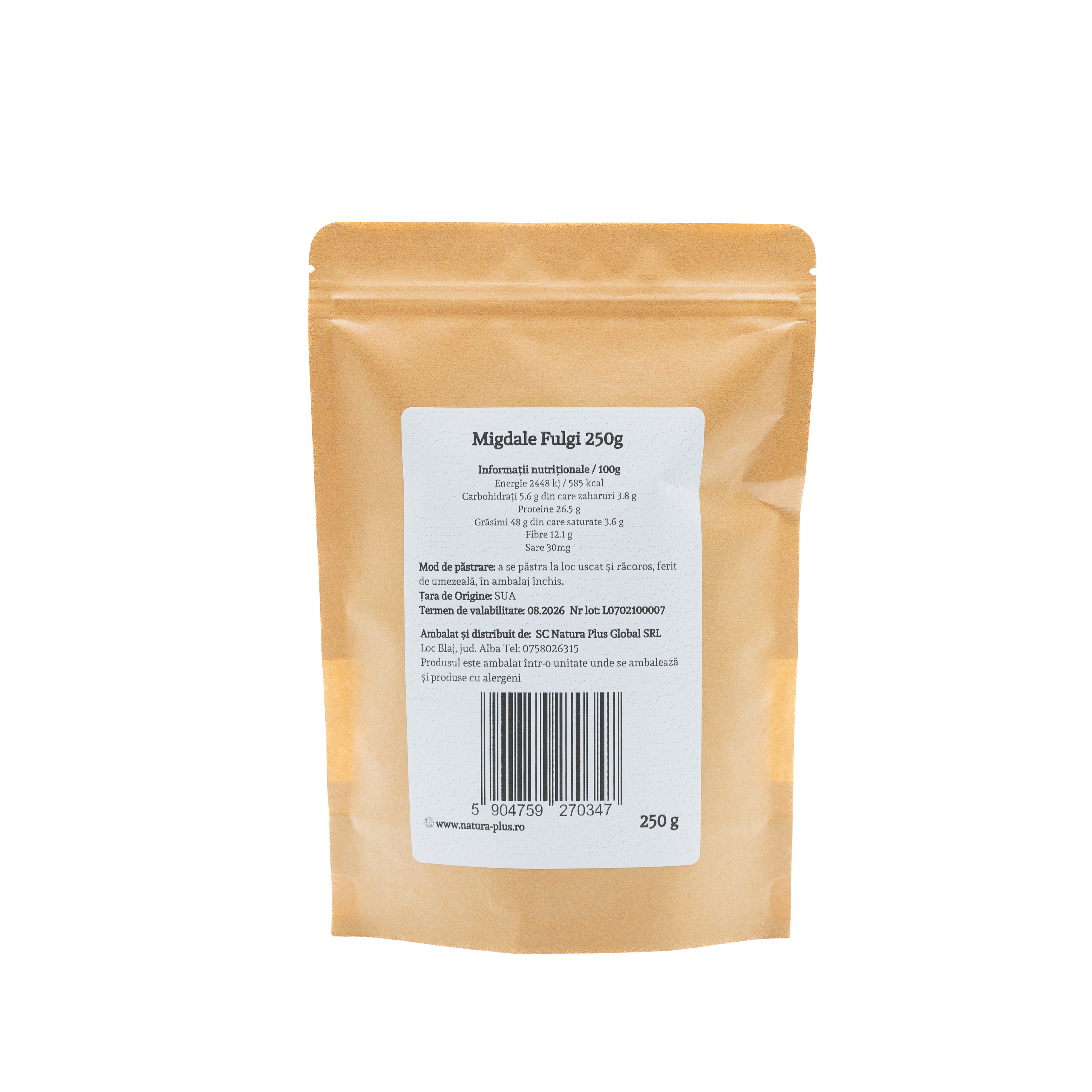 Fulgii de migdale Natura Plus sunt obținuți din migdale decojite, tăiate subțire. Sunt bogați în grăsimi bune, vitamina E și magneziu, contribuind la sănătatea pielii și inimii.