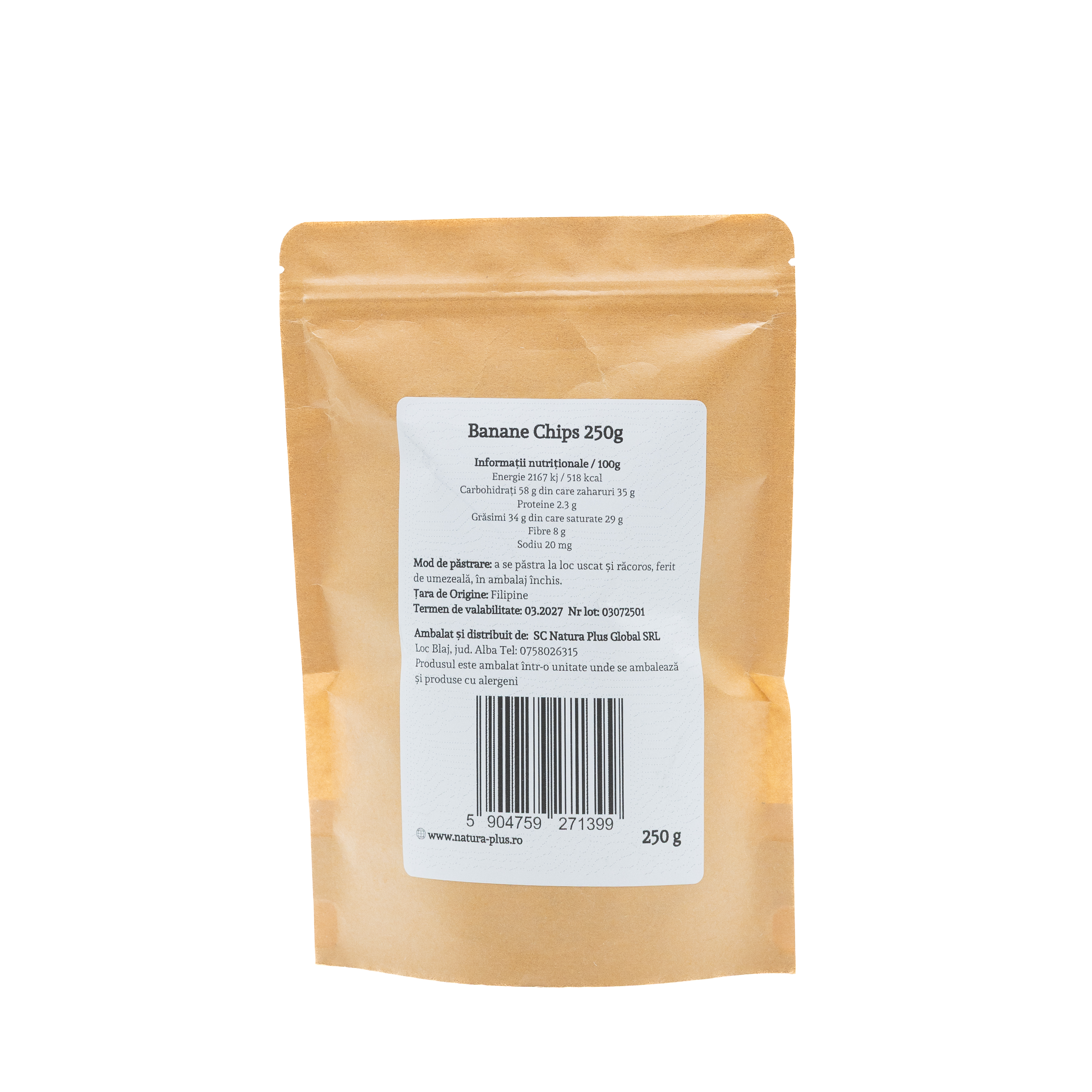 Bananele chips Natura Plus sunt felii subțiri de banană coaptă, deshidratată și prăjită ușor pentru un gust dulceag și crocant. O sursă naturală de energie, potrivită pentru orice moment al zilei.
