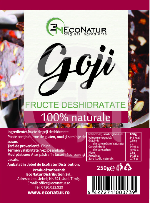 Fructe de goji, deshidratate, conservant (dioxid de sulf).