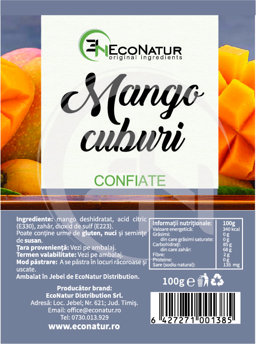 Ultima actualizare a informatiilor de prezentare pentru Mango cuburi confiate, 100 g, Econatur a fost efectuata la data de 25-04-2026.  |  Raporteaza Descriere Gresita