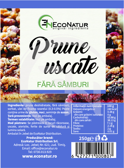 Prune uscate, fara samburi*.