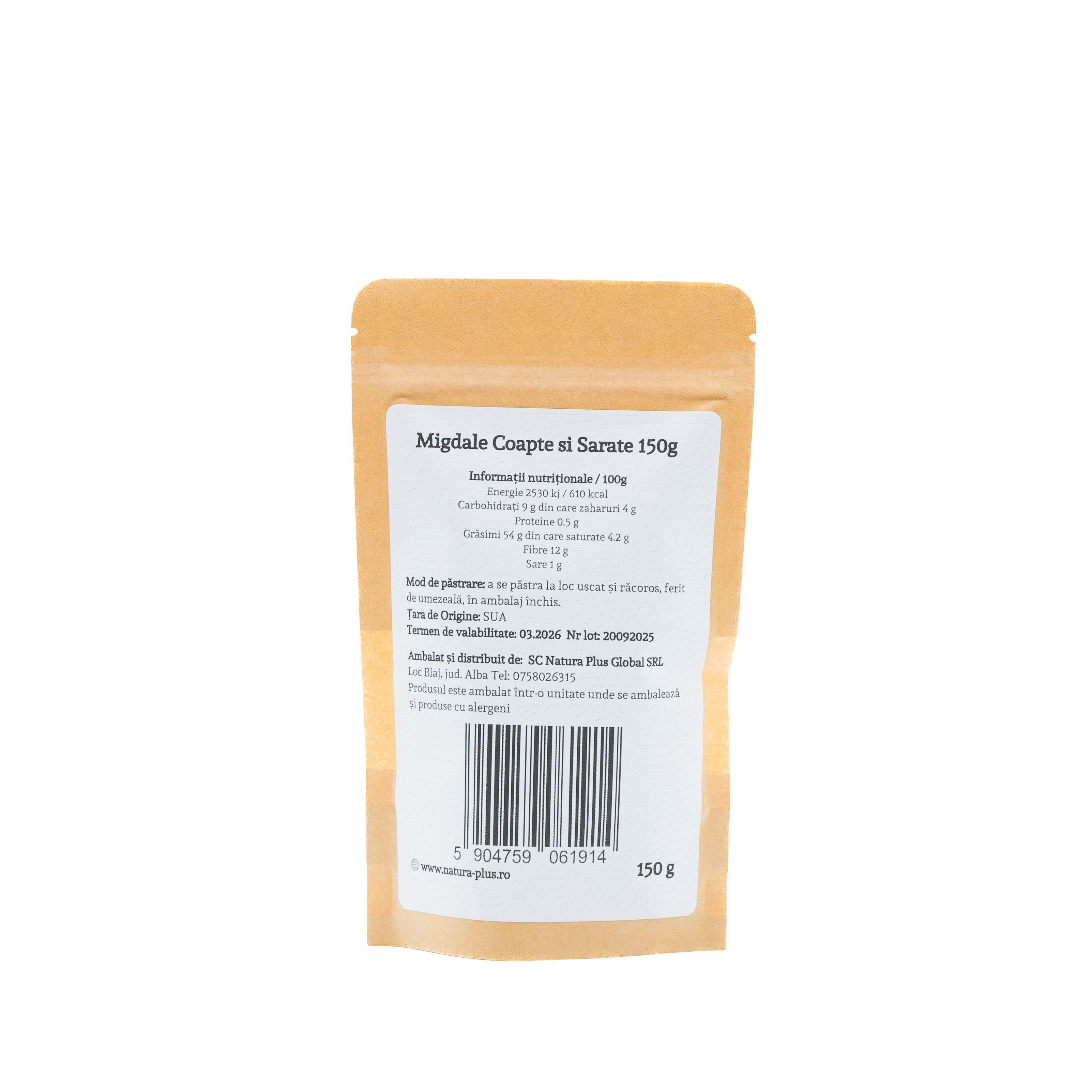 Migdalele coapte și sărate Natura Plus sunt o gustare delicioasă, bogată în proteine și grăsimi sănătoase.