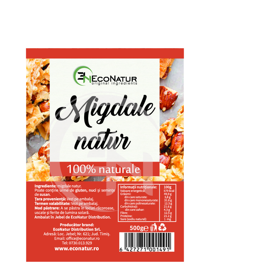 Migdale natur*. *Acest produs nu conţine şi nu este alcătuit din organisme modificate genetic.