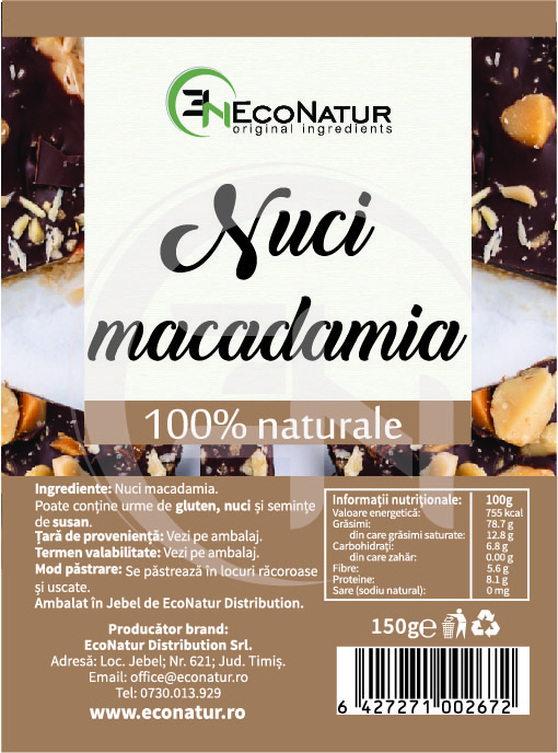 Nuci macadamia*.*Acest produs nu conţine şi nu este alcătuit din organisme modificate genetic.
