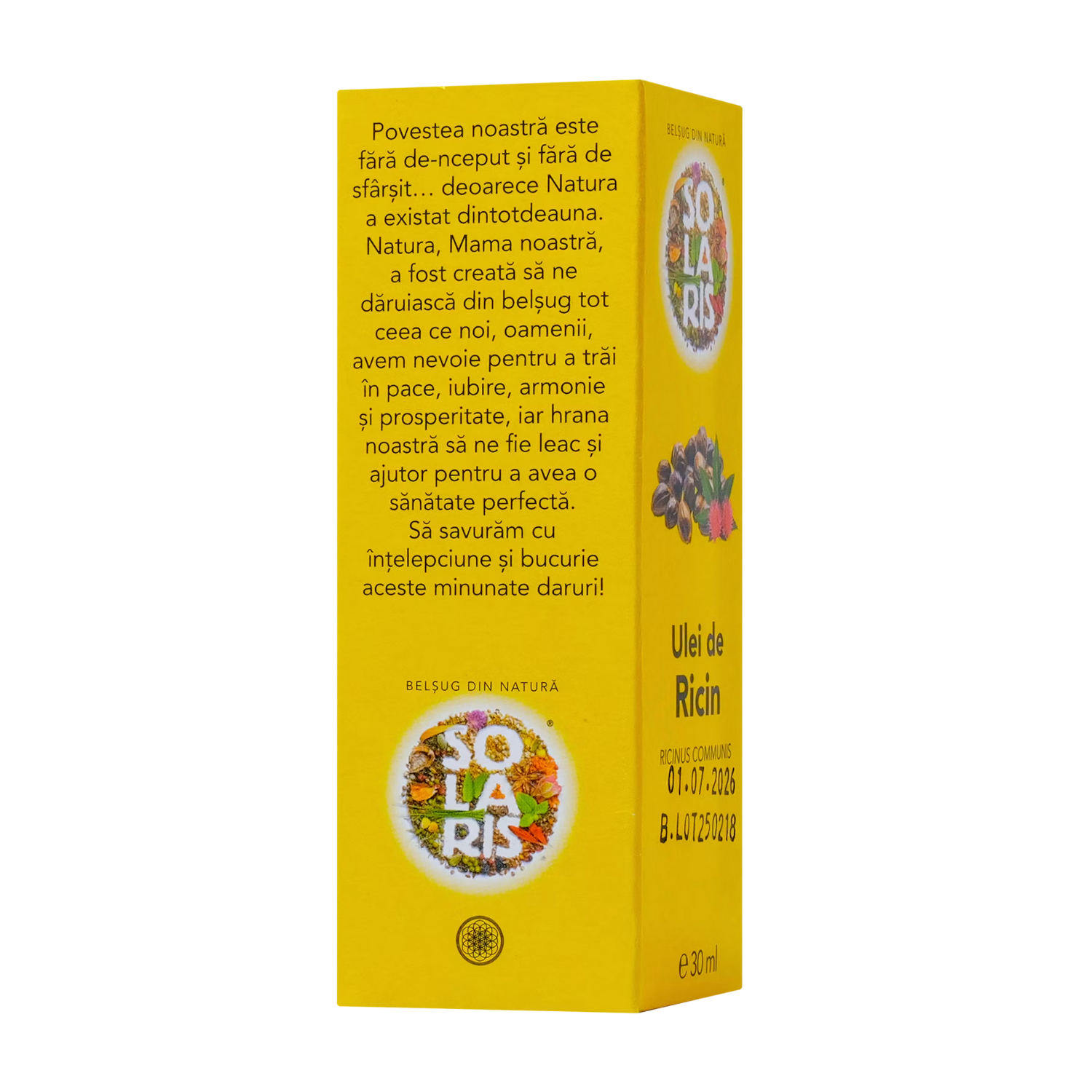Ulei de ricin extras din seminte de ricin. Un ulei galbui, vascos, bogat in acid ricinoleic si alti acizi grasi.