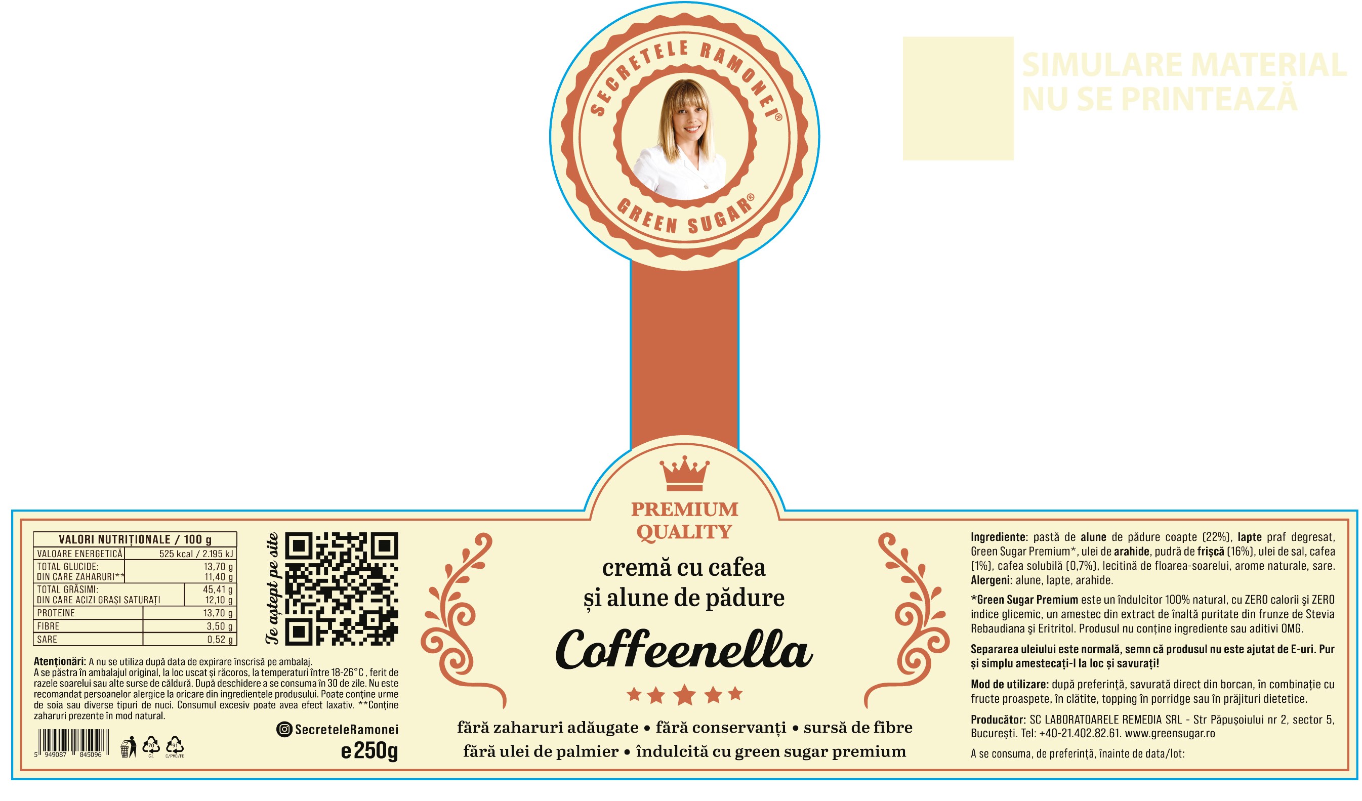 Ultima actualizare a informatiilor de prezentare pentru Crema cu cafea si alune de padure, Coffeenella, 250 g, Secretele Ramonei a fost efectuata la data de 16-04-2026.  |  Raporteaza Descriere Gresita