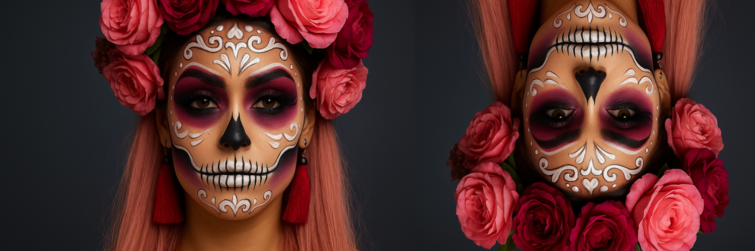 Machiajul Dia de los Muertos – La Catrina îmbină misterul scheletului cu frumusețea florală, fiind alegerea perfectă pentru un Halloween memorabil. Cu produsele potrivite și puțină răbdare, poți obține un look artistic, dramatic și elegant, care nu va trece neobservat.