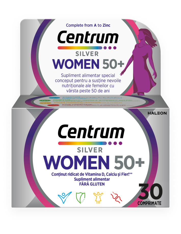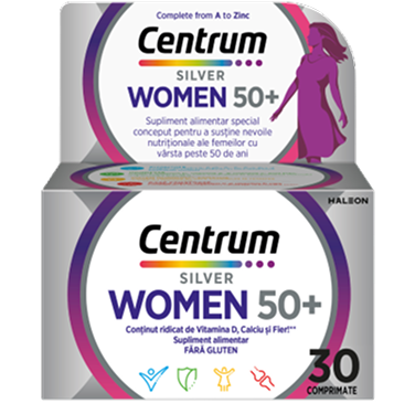 Special formulat pentru a satisface nevoile nutriționale specifice femeilor cu vârsta peste 50 de ani, cu vitamine și minerale care să susțină zilnic: