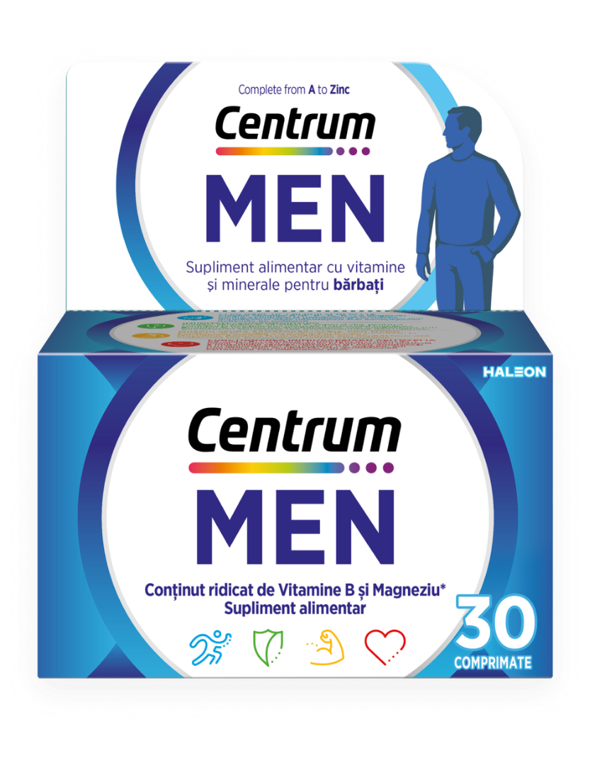 Special formulat pentru a satisface nevoile nutriționale specifice bărbaților, cu vitamine și minerale care să susțină zilnic: