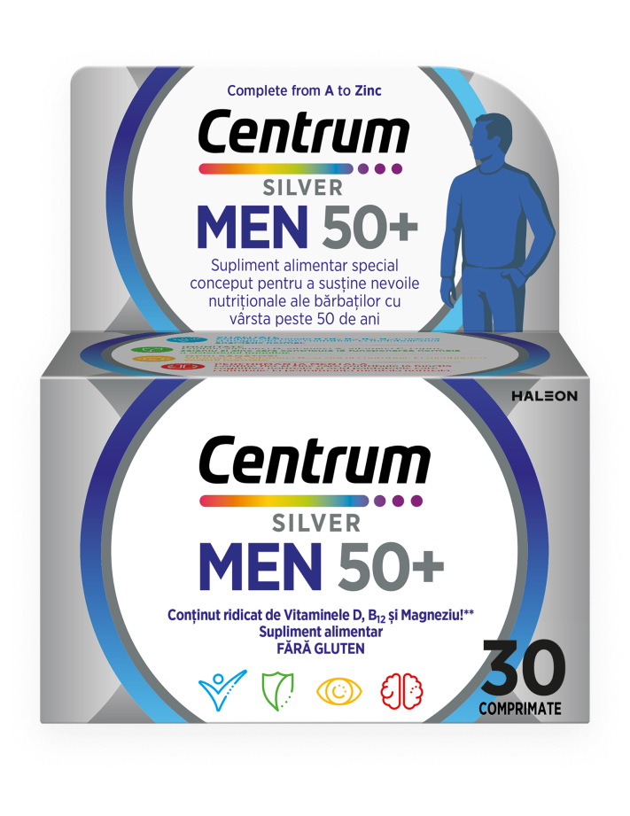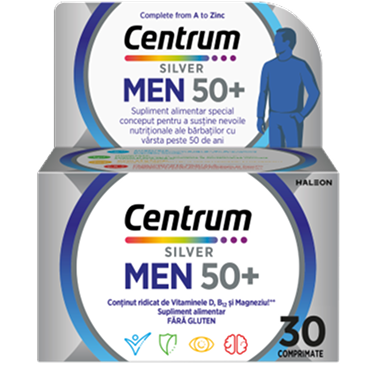 Special formulat pentru a satisface nevoile nutriționale ale bărbaților cu vârsta peste 50 de ani, cu vitamine și minerale care să susțină zilnic: