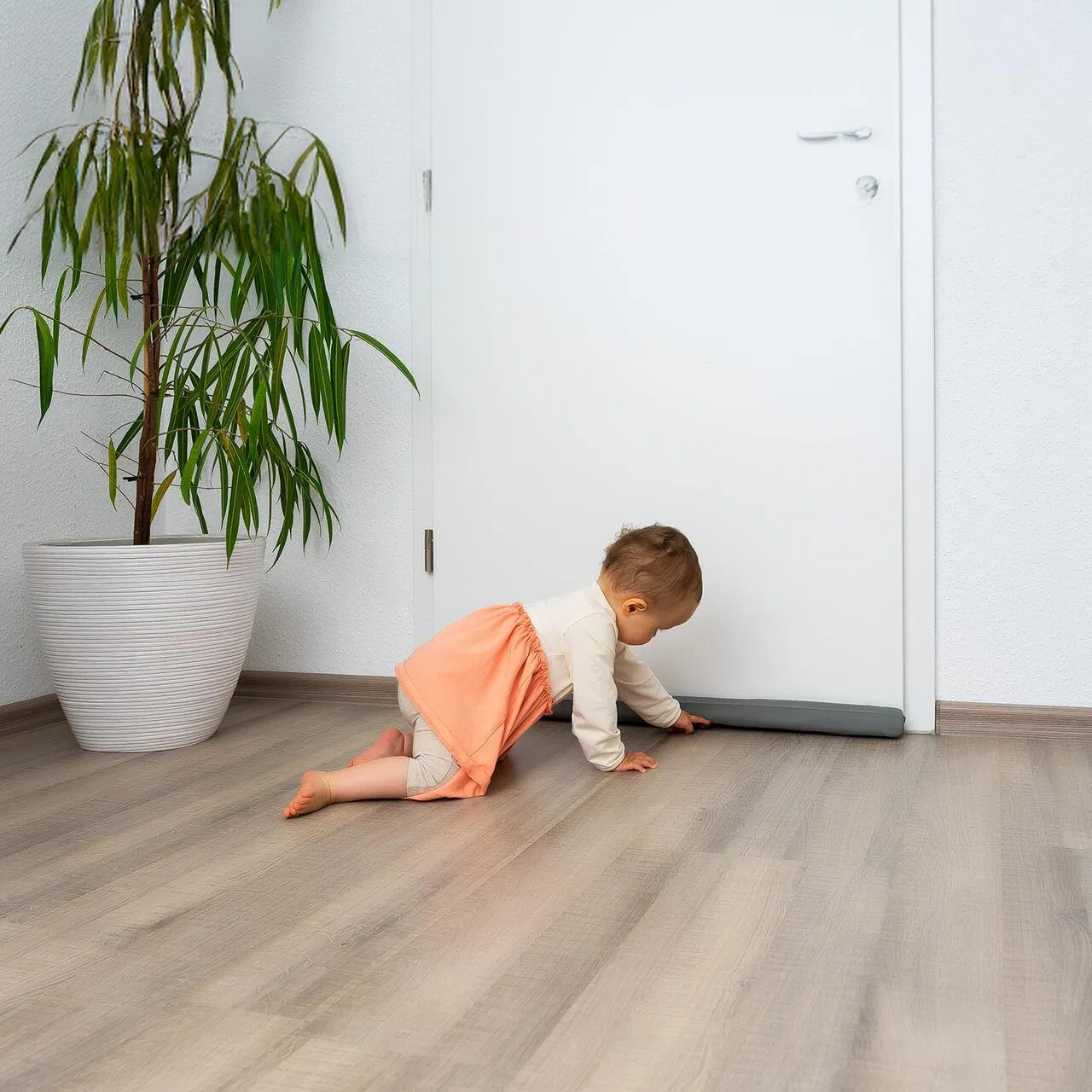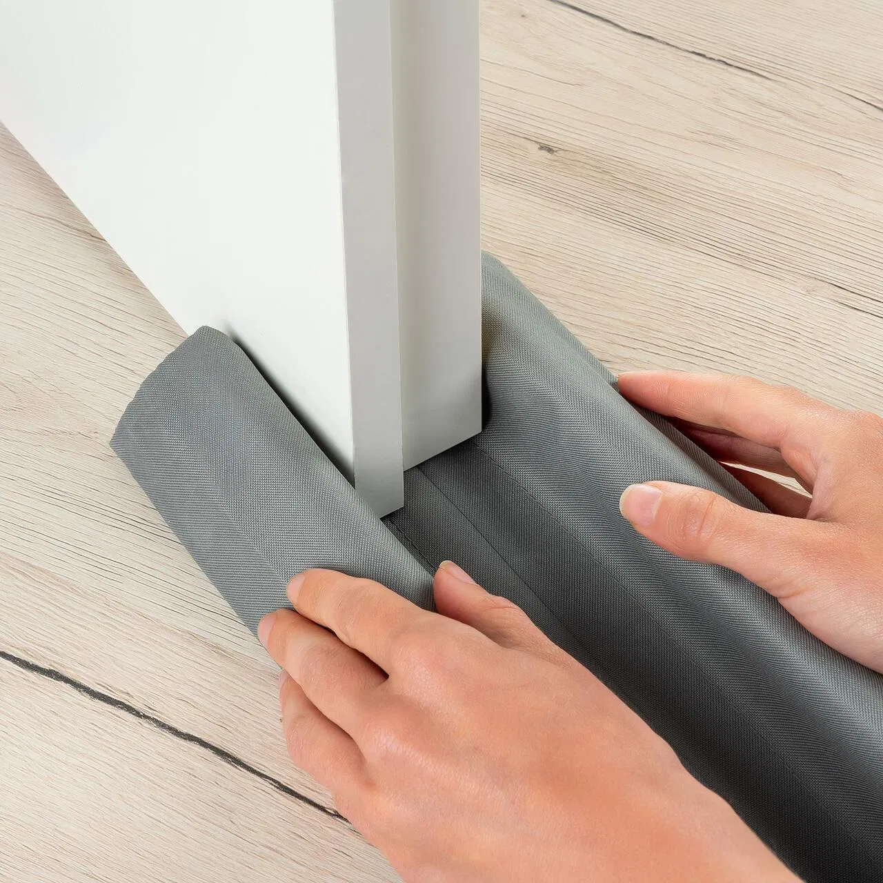 - Glisați protecția sub ușă, ajustând-o astfel încât să acopere complet spațiul inferior.