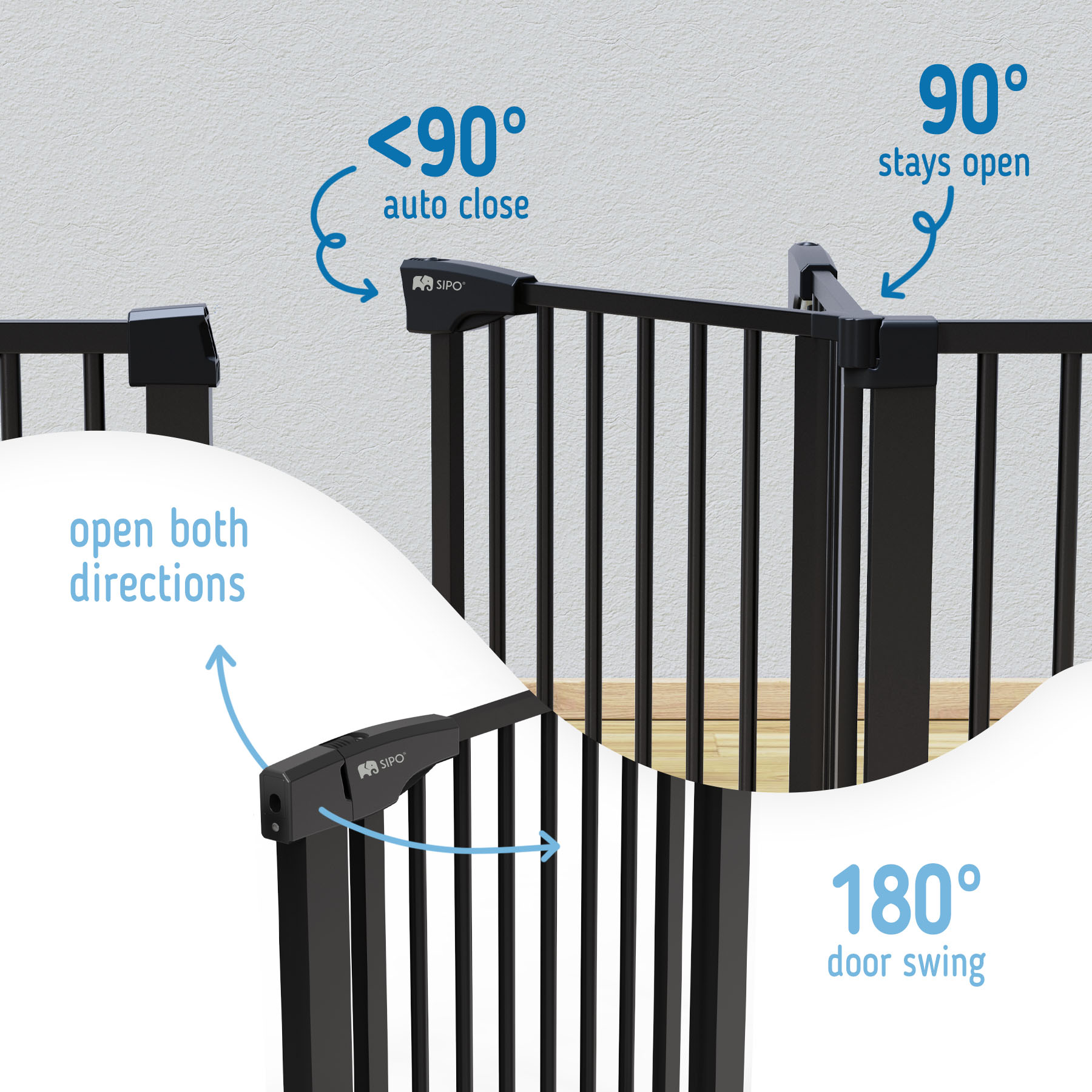 Cu un sistem bidirecțional de deschidere și mecanism ce permite operarea cu o singură mână, poarta este ideală pentru părinți – chiar și atunci când țin copilul în brațe. Lățimea reglabilă între 75 și 103 cm asigură compatibilitatea cu majoritatea deschiderilor, iar extensiile incluse permit adaptarea perfectă.