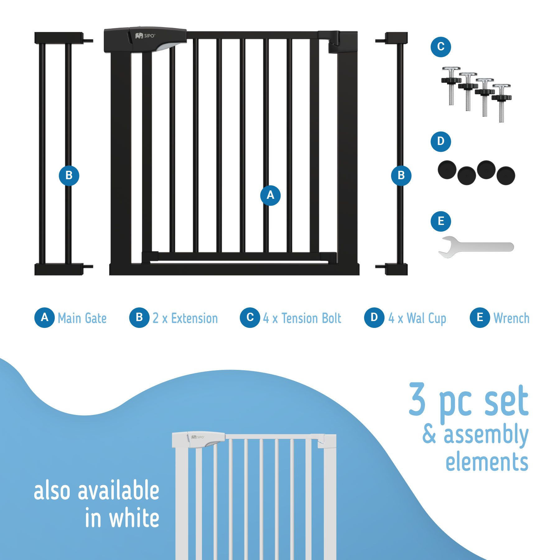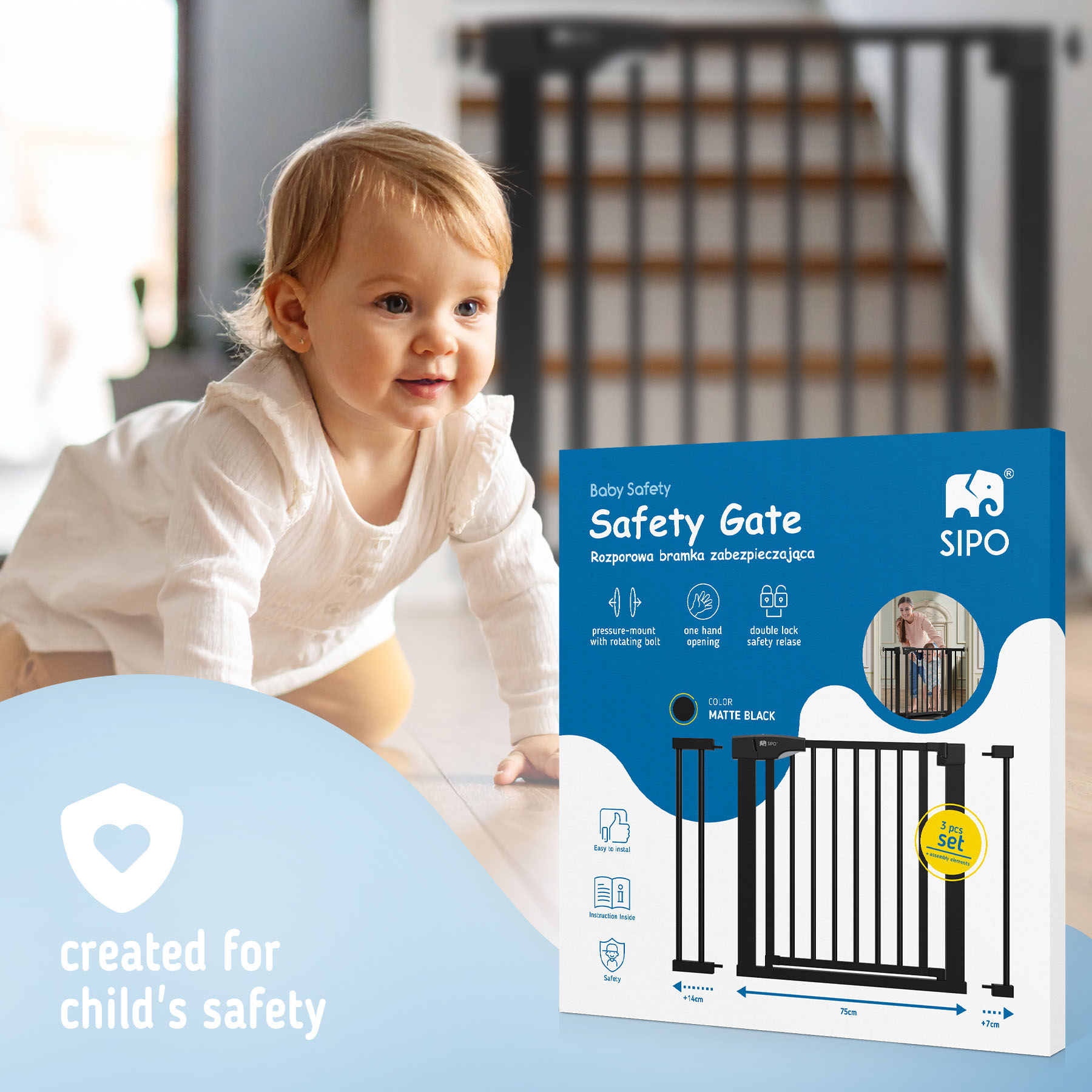 Poarta de siguranță SIPO este soluția practică pentru protejarea copiilor în locuințe cu scări, bucătării sau alte spații cu potențial periculos. Fabricată din oțel vopsit în pulbere și plastic ABS rezistent, aceasta se montează simplu, prin presiune, fără a fi nevoie de găurire sau unelte suplimentare.