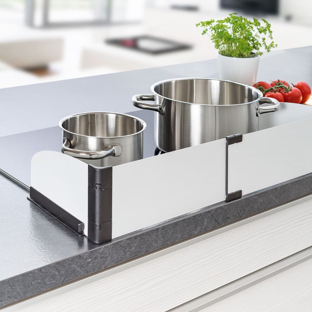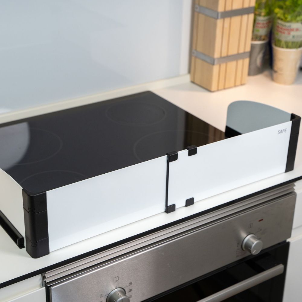 Sistemul este ușor de instalat în doar 5 minute, fără unelte speciale, și se montează ferm pe majoritatea tipurilor de aragazuri – pe gaz, electrice, din sticlă, ceramică sau oțel.