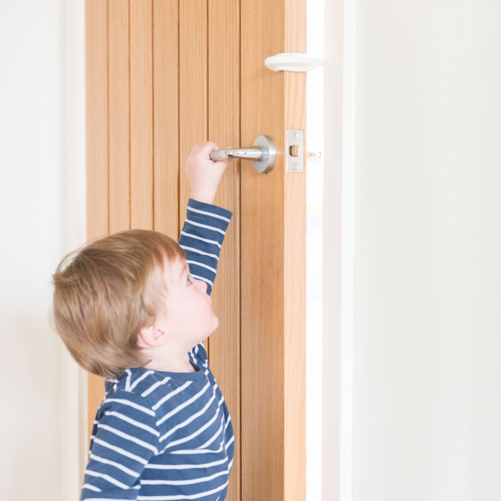 - Protejează doar partea cu mâner a ușii – pentru protecție completă, se recomandă folosirea unui dispozitiv suplimentar pe partea cu balamale.