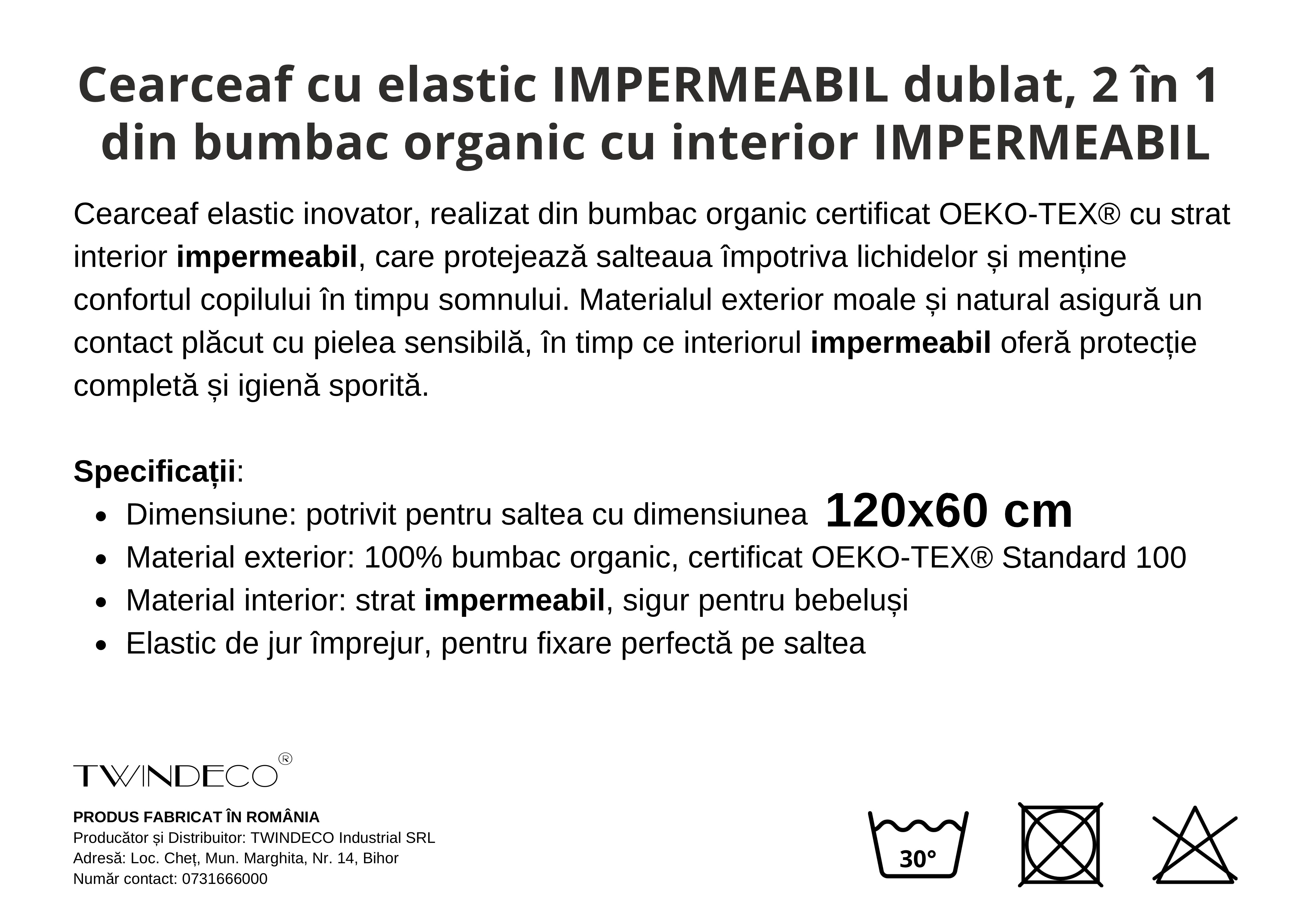 • Format 2în1: cearceaf + protecție impermeabilă