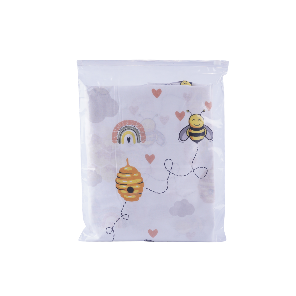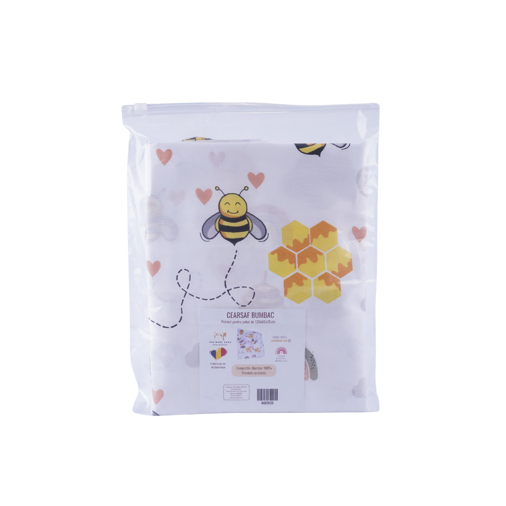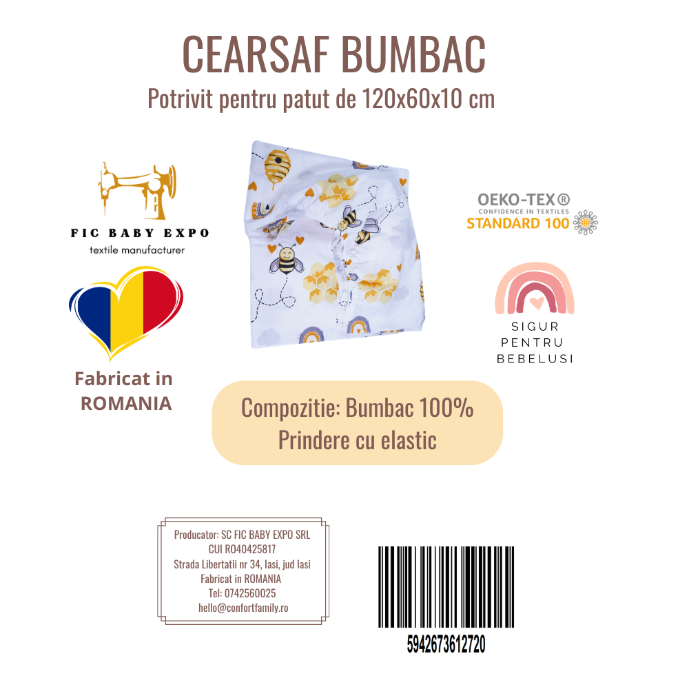 Cearsaful este destinat patutului de 120x60cm, cu o inaltime a saltelutei de pana la 10 cm. Prinderea se realizeaza cu usurinta, cu elastic.
