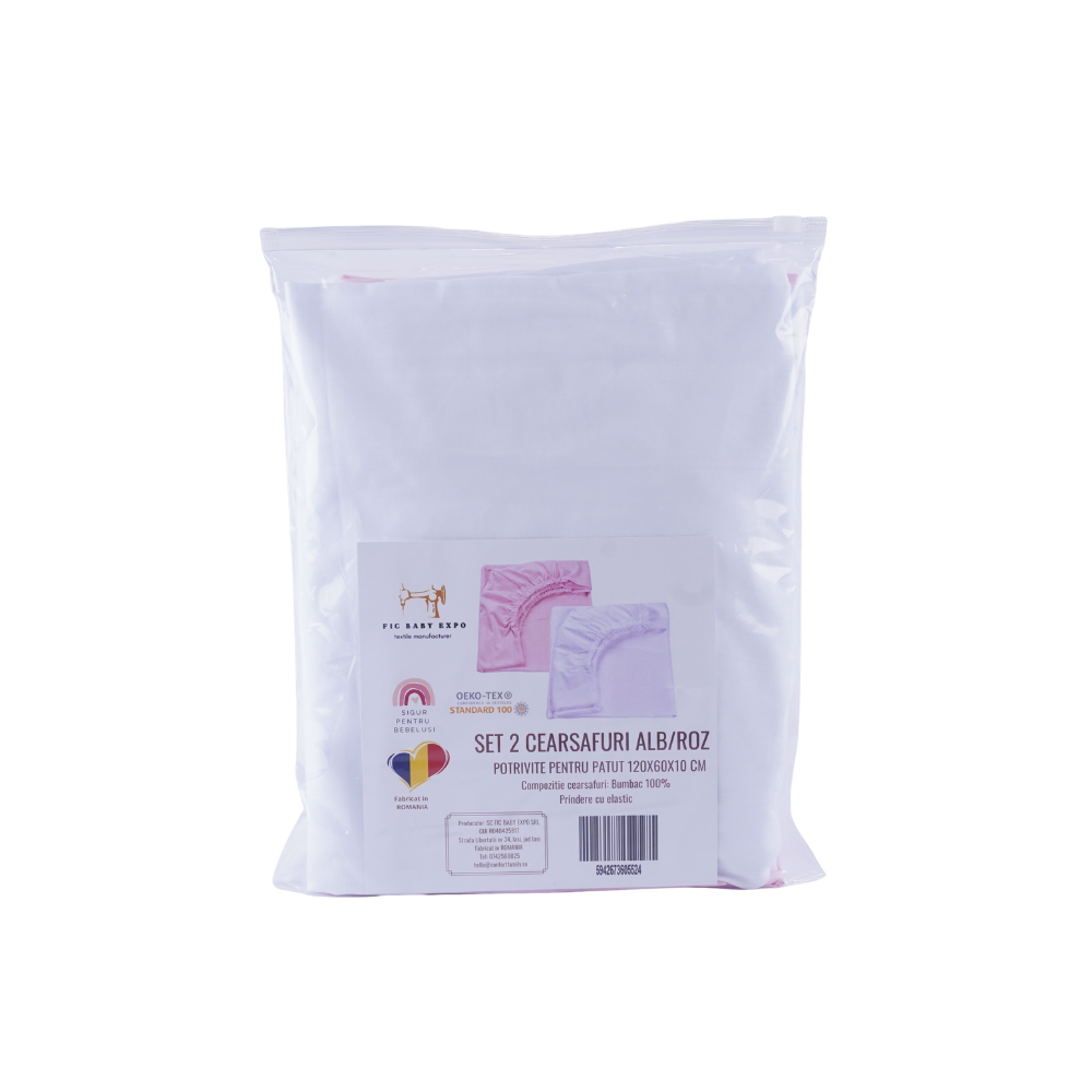 Set 2 cearceafuri pentru patut, 120x60 cm, Alb/Roz, Fic Baby [5942673605524]